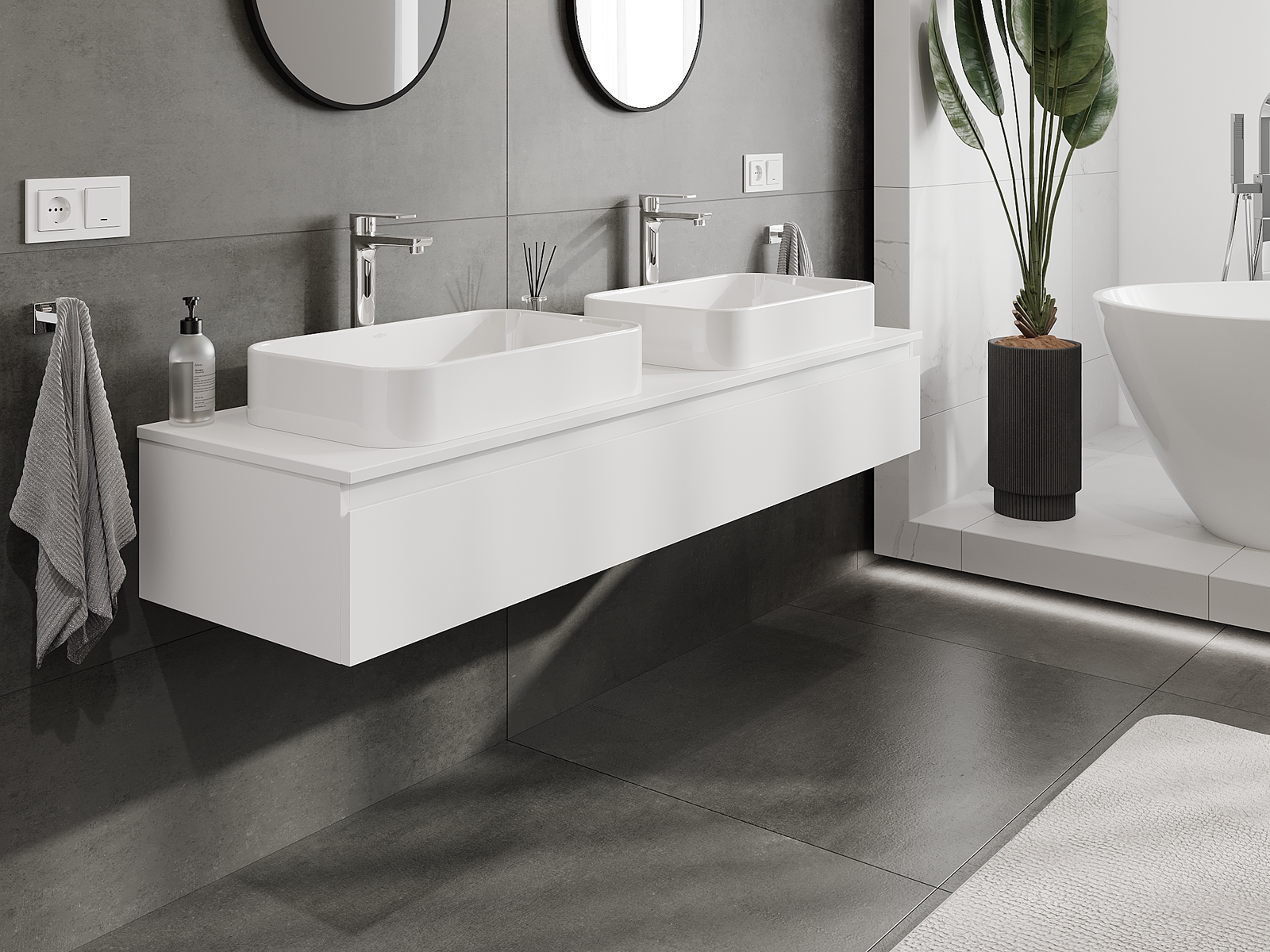 Τα αρθρωτά έπιπλα μπάνιου μας μπορούν να συνδυαστούν μεταξύ τους σε διάφορες χρωματικές διαμορφώσεις, επιτρέποντας πλήρη εξατομίκευση. Μπορείτε να επιλέξετε τόσο την εμφάνιση όσο και τις λειτουργίες των επιμέρους στοιχείων, ώστε να προσαρμόσετε τα έπιπλα στις δικές σας στιλιστικές και λειτουργικές προτιμήσεις.