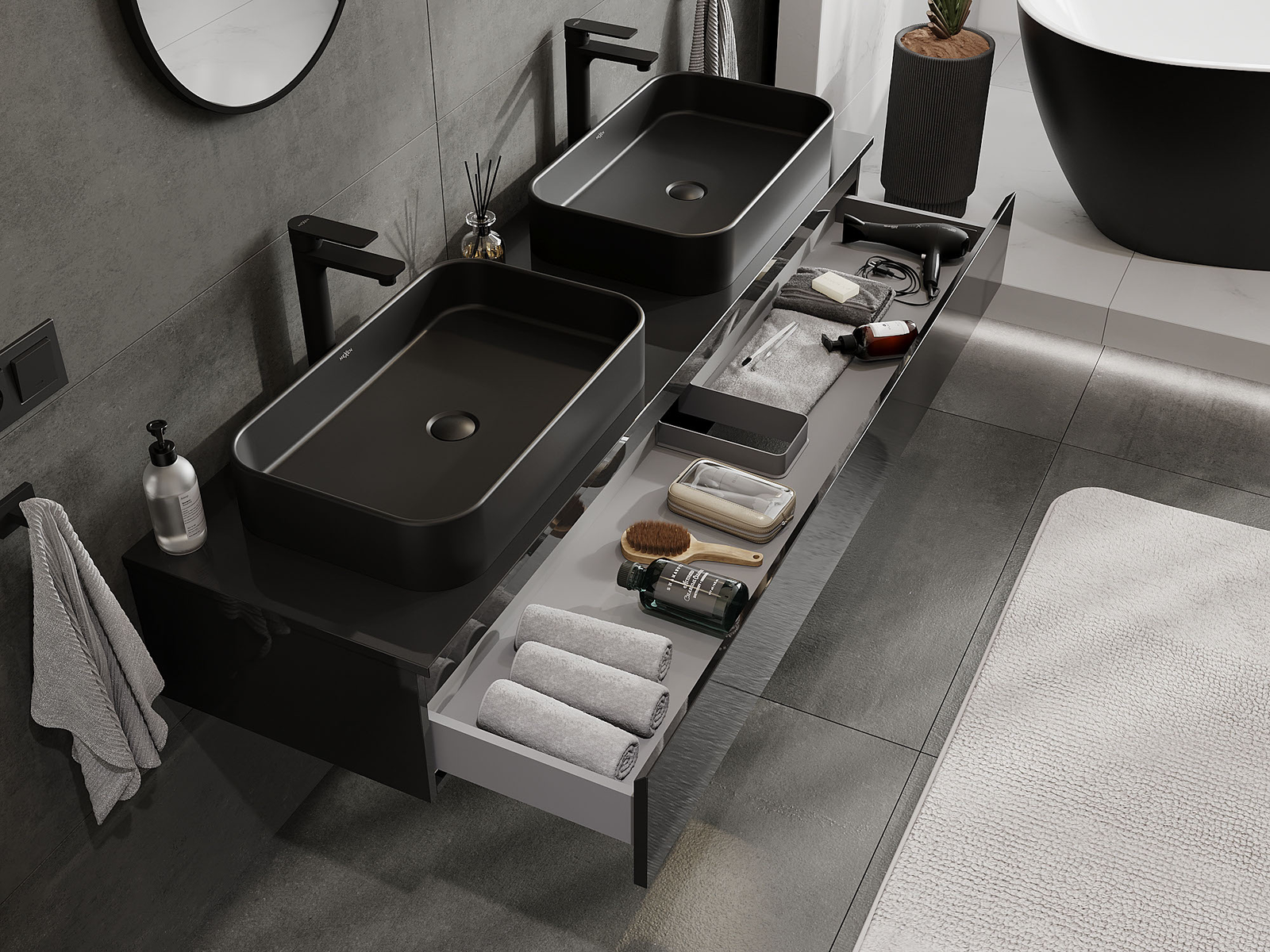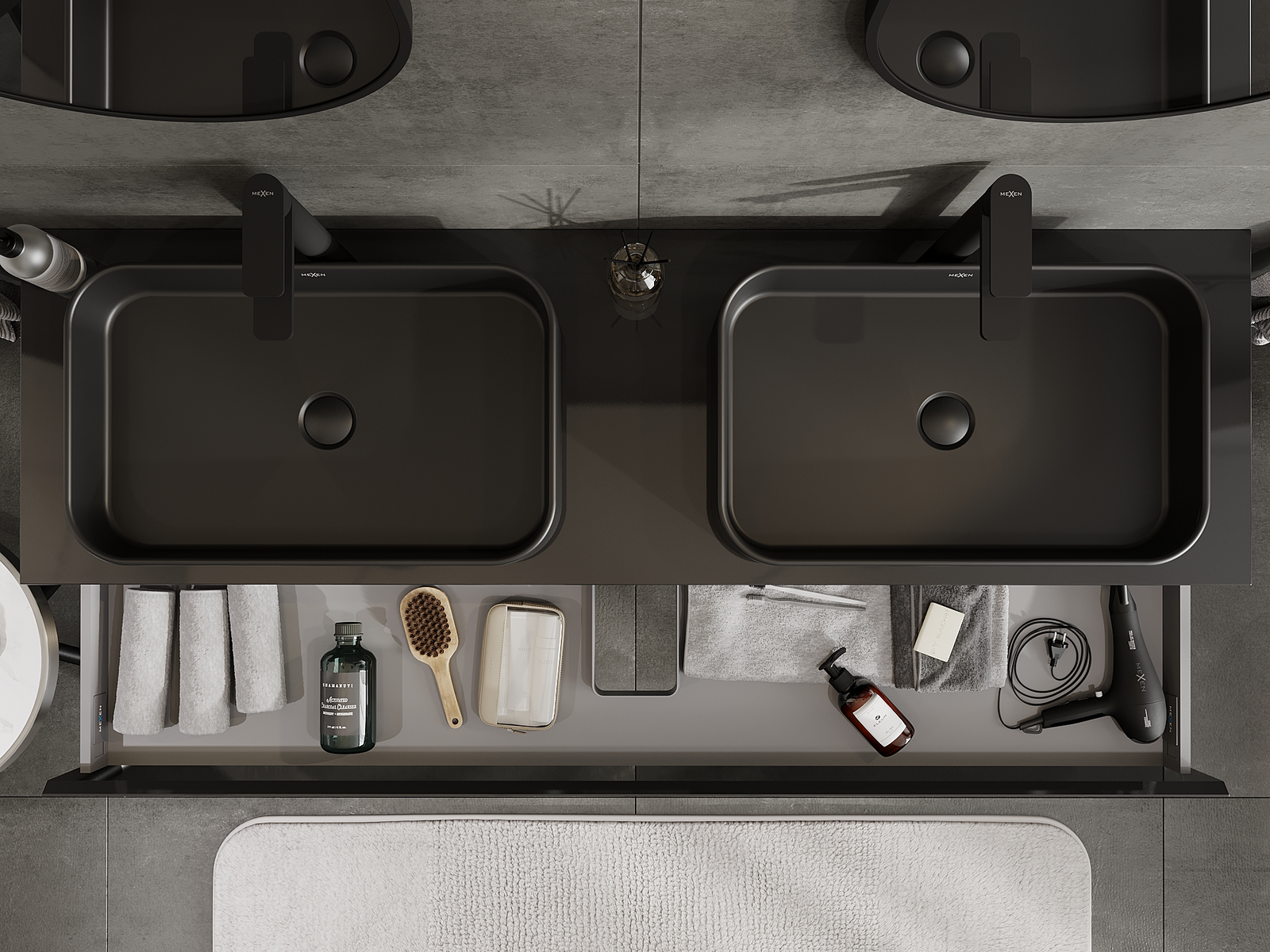 Mexen Orio ντουλάπι μπάνιου κάτω από τον νιπτήρα 160 cm, 1 συρτάρι, μαύρη