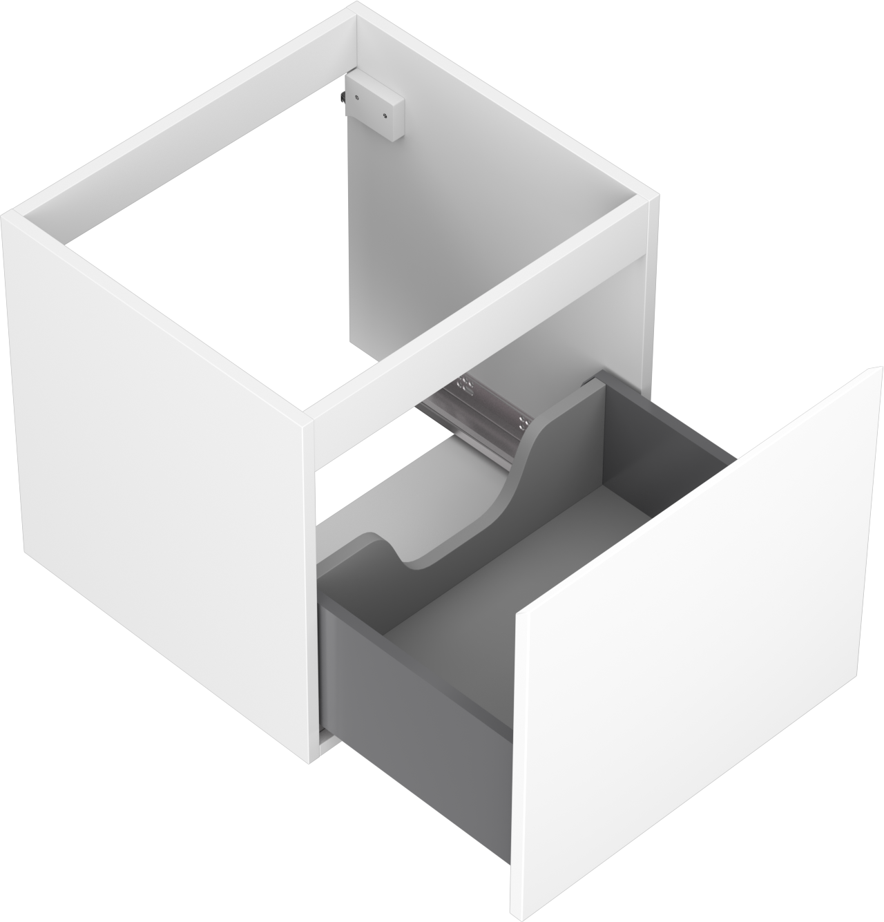 Η εγκοπή στο συρτάρι είναι σχεδιασμένη με τέτοιο τρόπο, ώστε να φιλοξενεί το σιφόνι, το οποίο είναι απαραίτητο στις εγκαταστάσεις νιπτήρων. Έτσι, το έπιπλο μπορεί να εγκατασταθεί πλήρως λειτουργικά, χωρίς την ανάγκη παραίτησης από χώρο στο συρτάρι υπέρ της εγκατάστασης.
