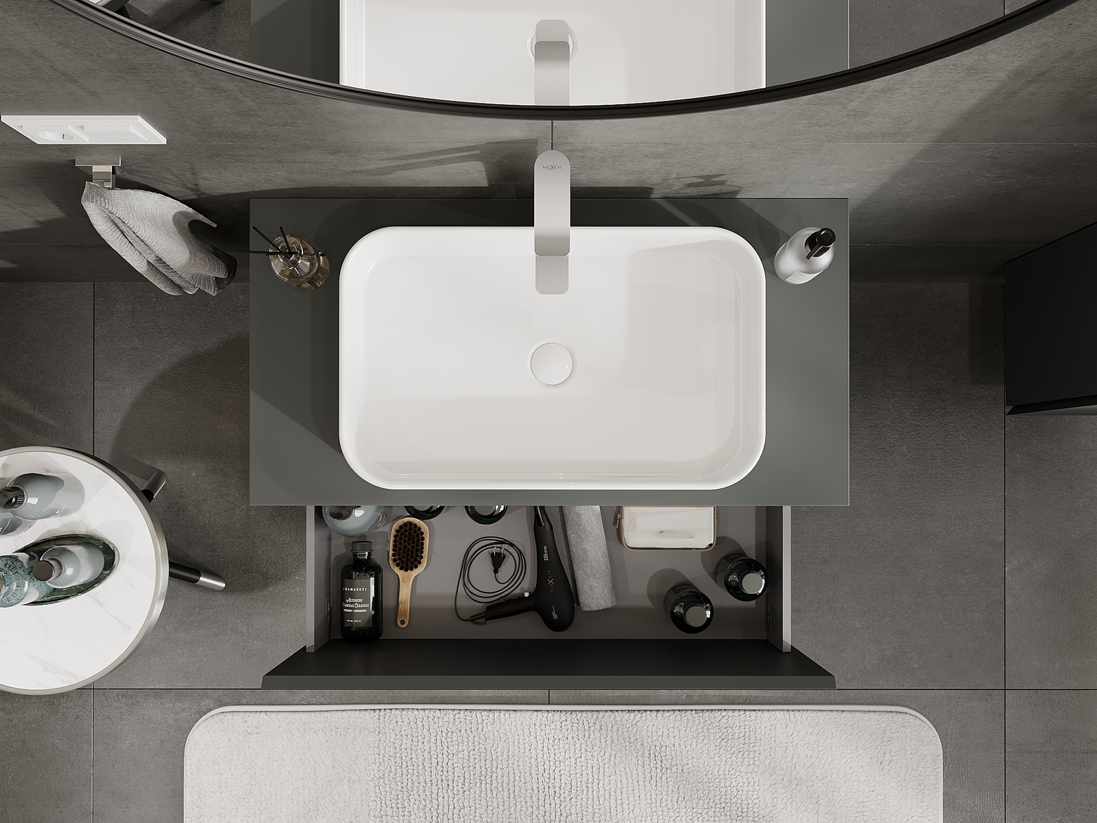 Mexen Orio ντουλάπι μπάνιου για νιπτήρα 90 cm, 1 συρτάρι, ματ γραφίτης