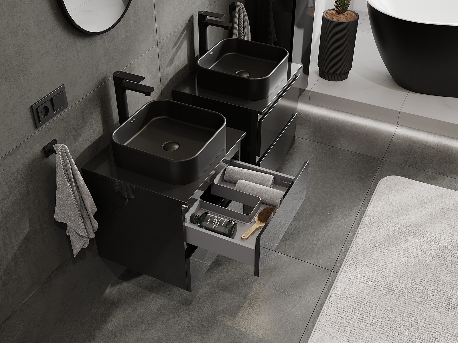 Τα αρθρωτά έπιπλα μπάνιου μας μπορούν να συνδυαστούν μεταξύ τους σε διάφορες χρωματικές διαμορφώσεις, επιτρέποντας πλήρη εξατομίκευση. Μπορείτε να επιλέξετε τόσο την εμφάνιση όσο και τις λειτουργίες των επιμέρους στοιχείων, ώστε να προσαρμόσετε τα έπιπλα στις δικές σας στιλιστικές και λειτουργικές προτιμήσεις.