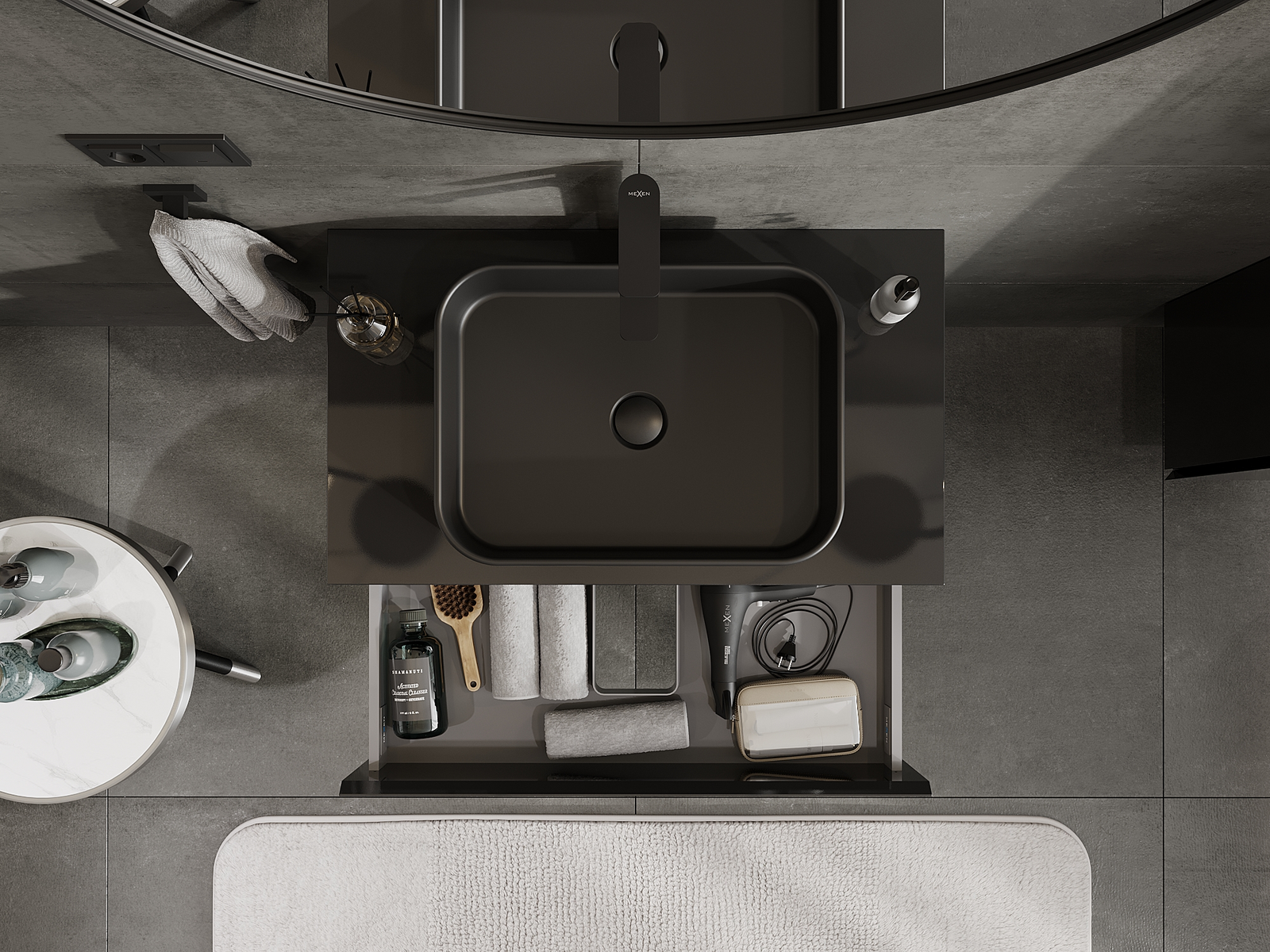 Mexen Orio ντουλάπι μπάνιου για νιπτήρα 80 cm, 2 συρτάρια, μαύρο γυαλιστερό