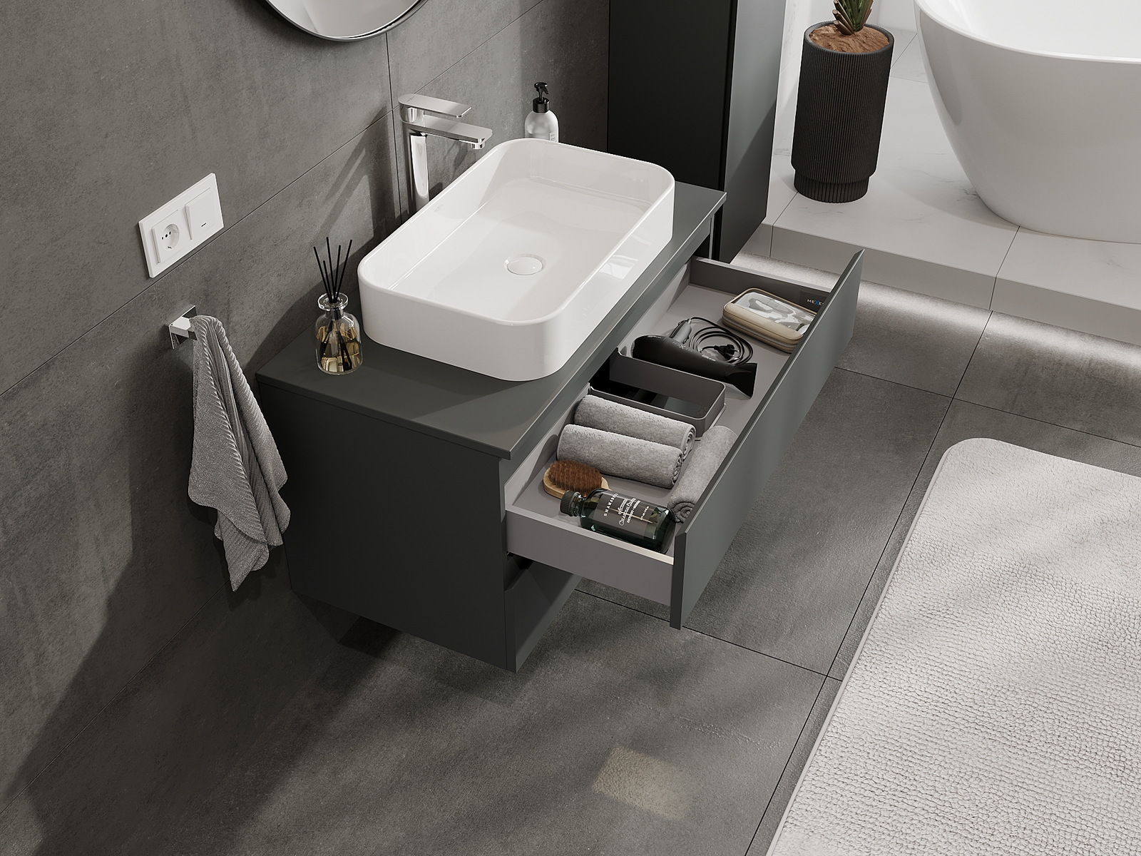 Mexen Orio ντουλάπι μπάνιου κάτω από νιπτήρα 90 cm, 2 συρτάρια, γραφίτης ματ
