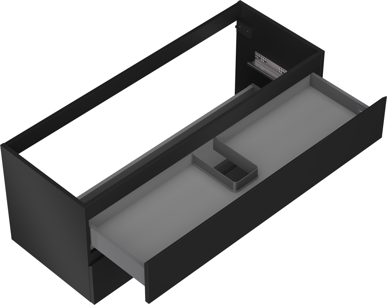 Η εγκοπή στο συρτάρι είναι σχεδιασμένη με τέτοιο τρόπο, ώστε να φιλοξενεί το σιφόνι, το οποίο είναι απαραίτητο στις εγκαταστάσεις νιπτήρων. Έτσι, το έπιπλο μπορεί να εγκατασταθεί πλήρως λειτουργικά, χωρίς την ανάγκη παραίτησης από χώρο στο συρτάρι υπέρ της εγκατάστασης.