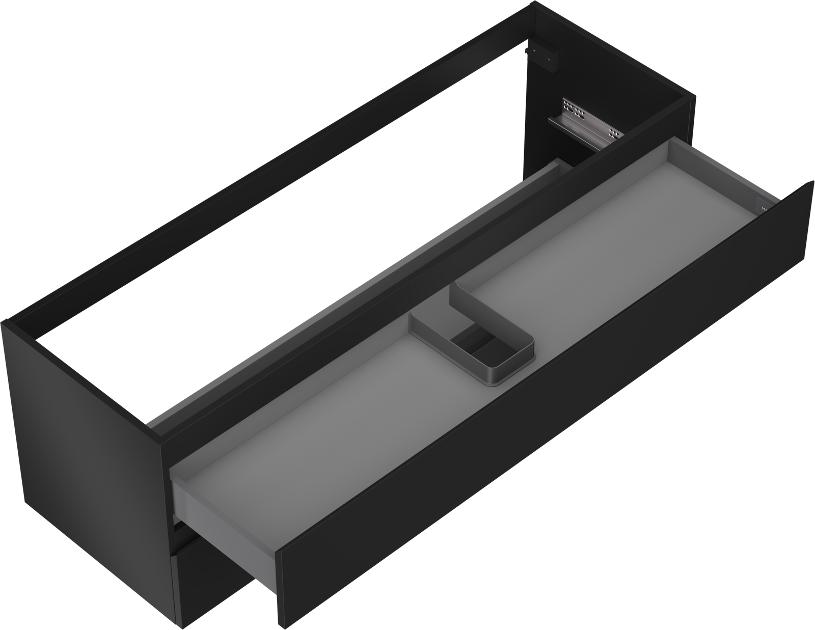 Η εγκοπή στο συρτάρι είναι σχεδιασμένη με τέτοιο τρόπο, ώστε να φιλοξενεί το σιφόνι, το οποίο είναι απαραίτητο στις εγκαταστάσεις νιπτήρων. Έτσι, το έπιπλο μπορεί να εγκατασταθεί πλήρως λειτουργικά, χωρίς την ανάγκη παραίτησης από χώρο στο συρτάρι υπέρ της εγκατάστασης.