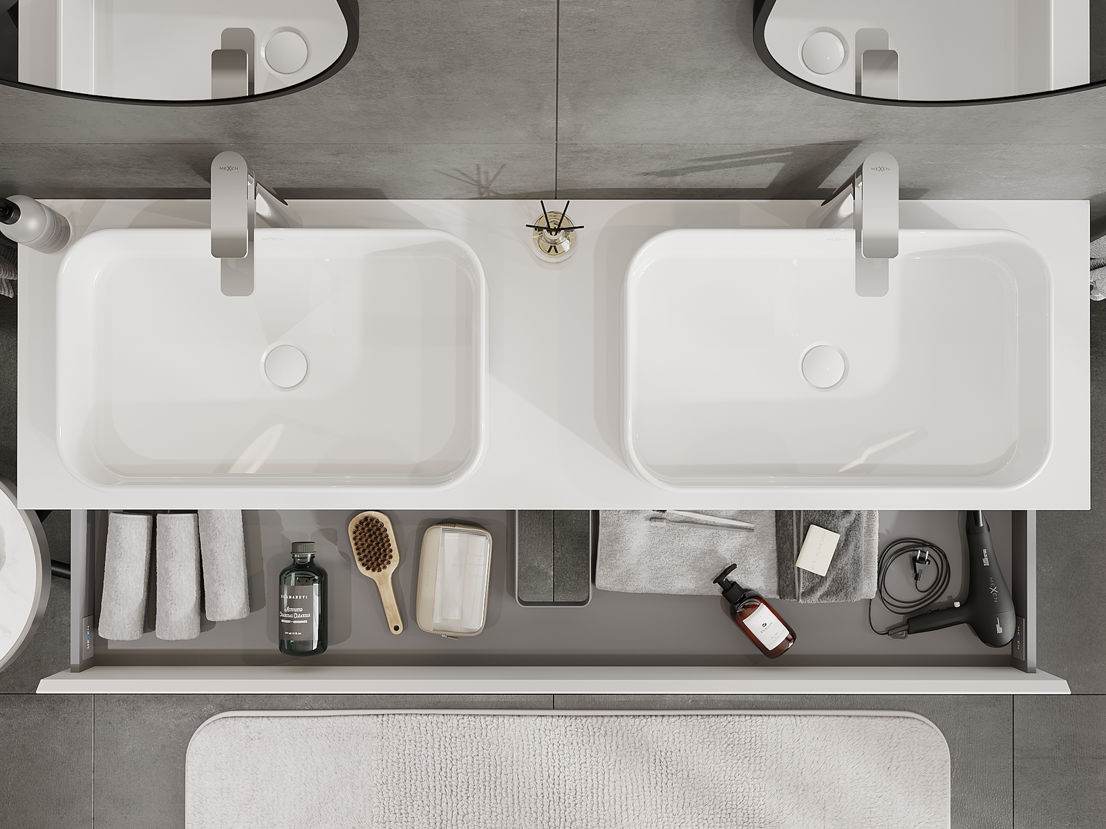Mexen Orio ντουλάπι μπάνιου κάτω από νιπτήρα 160 cm, 2 συρτάρια, λευκό ματ