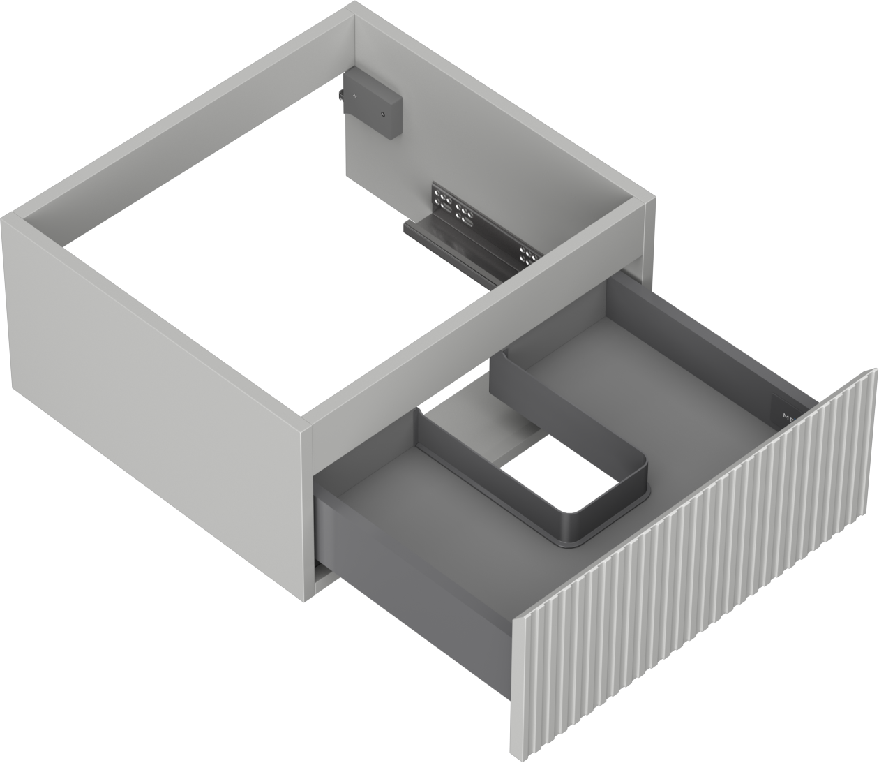 Η εγκοπή στο συρτάρι είναι σχεδιασμένη με τέτοιο τρόπο, ώστε να φιλοξενεί το σιφόνι, το οποίο είναι απαραίτητο στις εγκαταστάσεις νιπτήρων. Έτσι, το έπιπλο μπορεί να εγκατασταθεί πλήρως λειτουργικά, χωρίς την ανάγκη παραίτησης από χώρο στο συρτάρι υπέρ της εγκατάστασης.