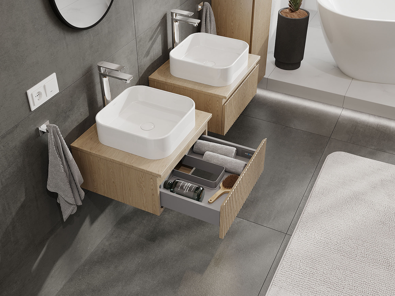 Τα αρθρωτά έπιπλα μπάνιου μας μπορούν να συνδυαστούν μεταξύ τους σε διάφορες χρωματικές διαμορφώσεις, επιτρέποντας πλήρη εξατομίκευση. Μπορείτε να επιλέξετε τόσο την εμφάνιση όσο και τις λειτουργίες των επιμέρους στοιχείων, ώστε να προσαρμόσετε τα έπιπλα στις δικές σας στιλιστικές και λειτουργικές προτιμήσεις.