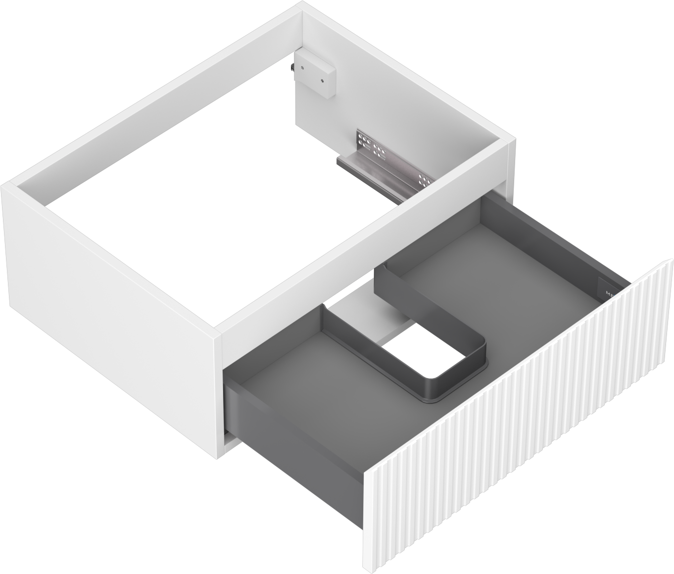 Η εγκοπή στο συρτάρι είναι σχεδιασμένη με τέτοιο τρόπο, ώστε να φιλοξενεί το σιφόνι, το οποίο είναι απαραίτητο στις εγκαταστάσεις νιπτήρων. Έτσι, το έπιπλο μπορεί να εγκατασταθεί πλήρως λειτουργικά, χωρίς την ανάγκη παραίτησης από χώρο στο συρτάρι υπέρ της εγκατάστασης.