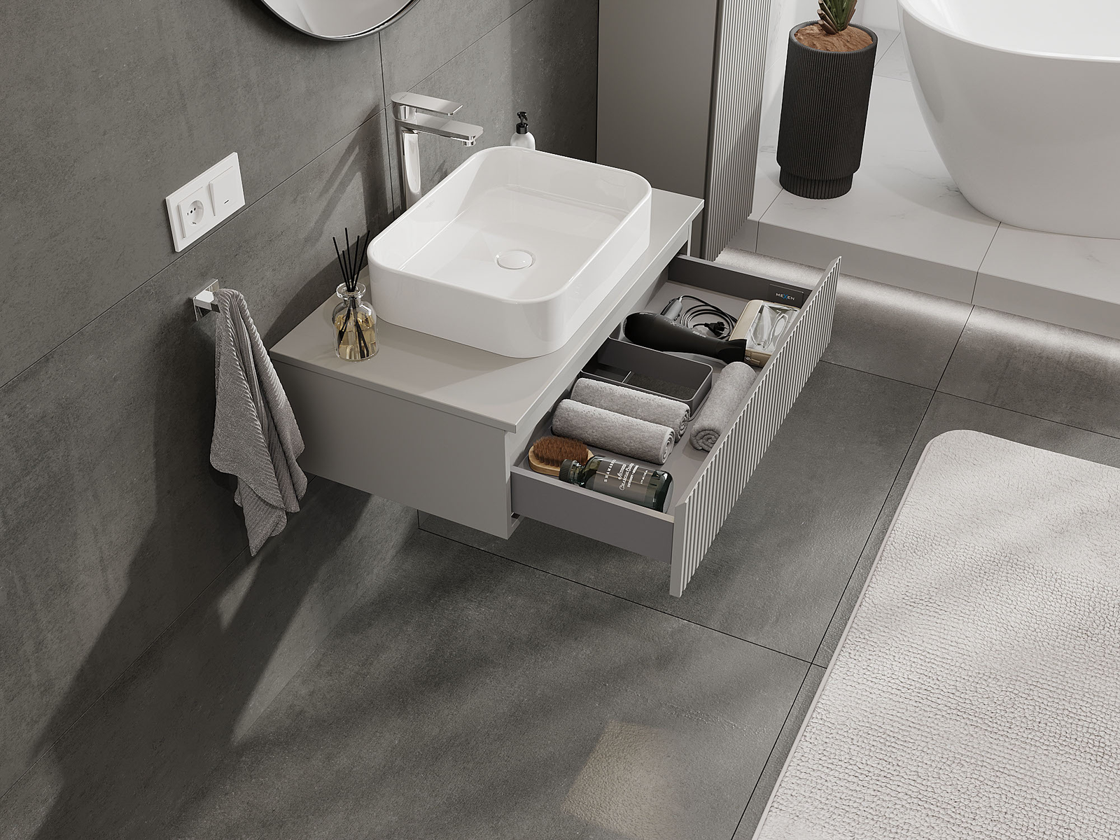 Mexen Rivel ντουλάπι μπάνιου κάτω από νιπτήρα 80 cm, 1 συρτάρι, ραβδωτό, γκρι
