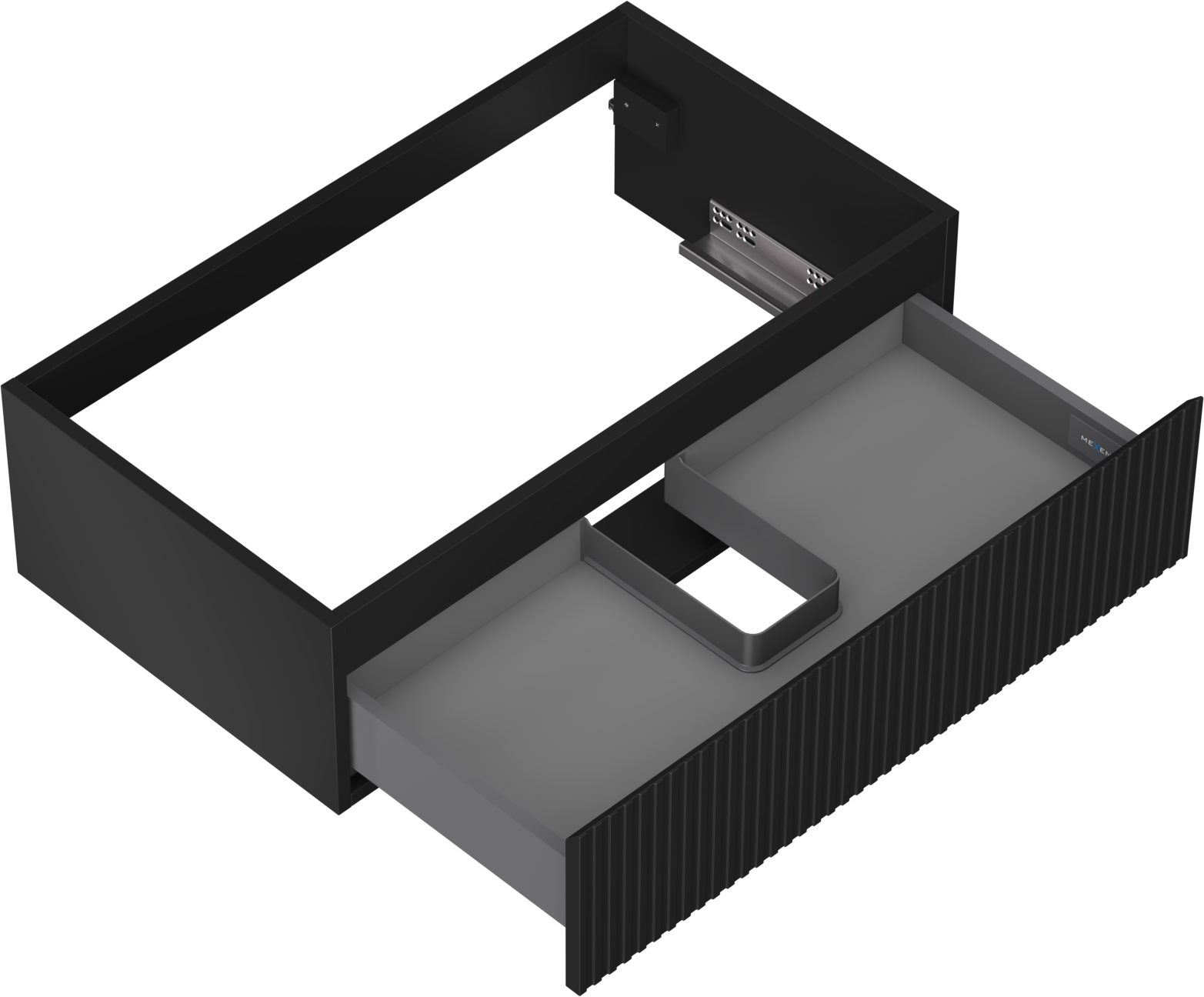 Η εγκοπή στο συρτάρι είναι σχεδιασμένη με τέτοιο τρόπο, ώστε να φιλοξενεί το σιφόνι, το οποίο είναι απαραίτητο στις εγκαταστάσεις νιπτήρων. Έτσι, το έπιπλο μπορεί να εγκατασταθεί πλήρως λειτουργικά, χωρίς την ανάγκη παραίτησης από χώρο στο συρτάρι υπέρ της εγκατάστασης.