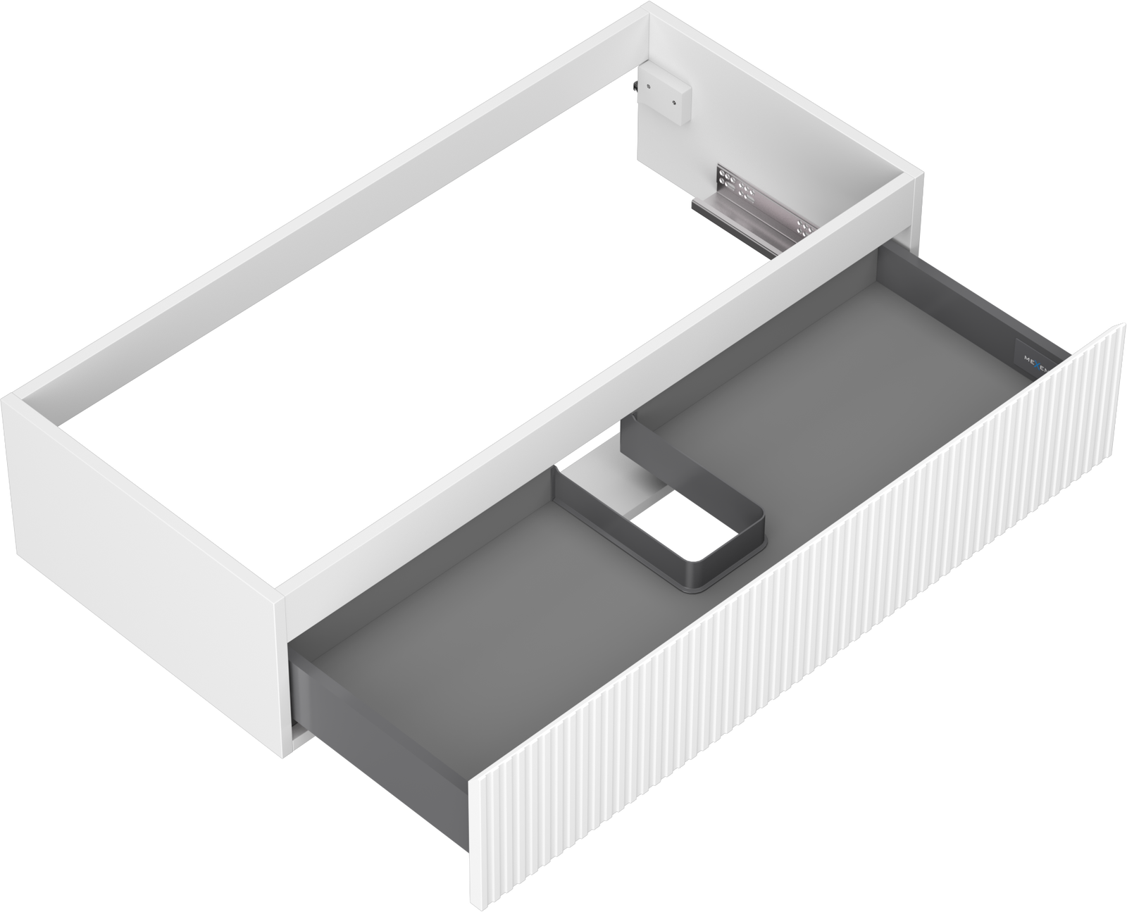 Η εγκοπή στο συρτάρι είναι σχεδιασμένη με τέτοιο τρόπο, ώστε να φιλοξενεί το σιφόνι, το οποίο είναι απαραίτητο στις εγκαταστάσεις νιπτήρων. Έτσι, το έπιπλο μπορεί να εγκατασταθεί πλήρως λειτουργικά, χωρίς την ανάγκη παραίτησης από χώρο στο συρτάρι υπέρ της εγκατάστασης.
