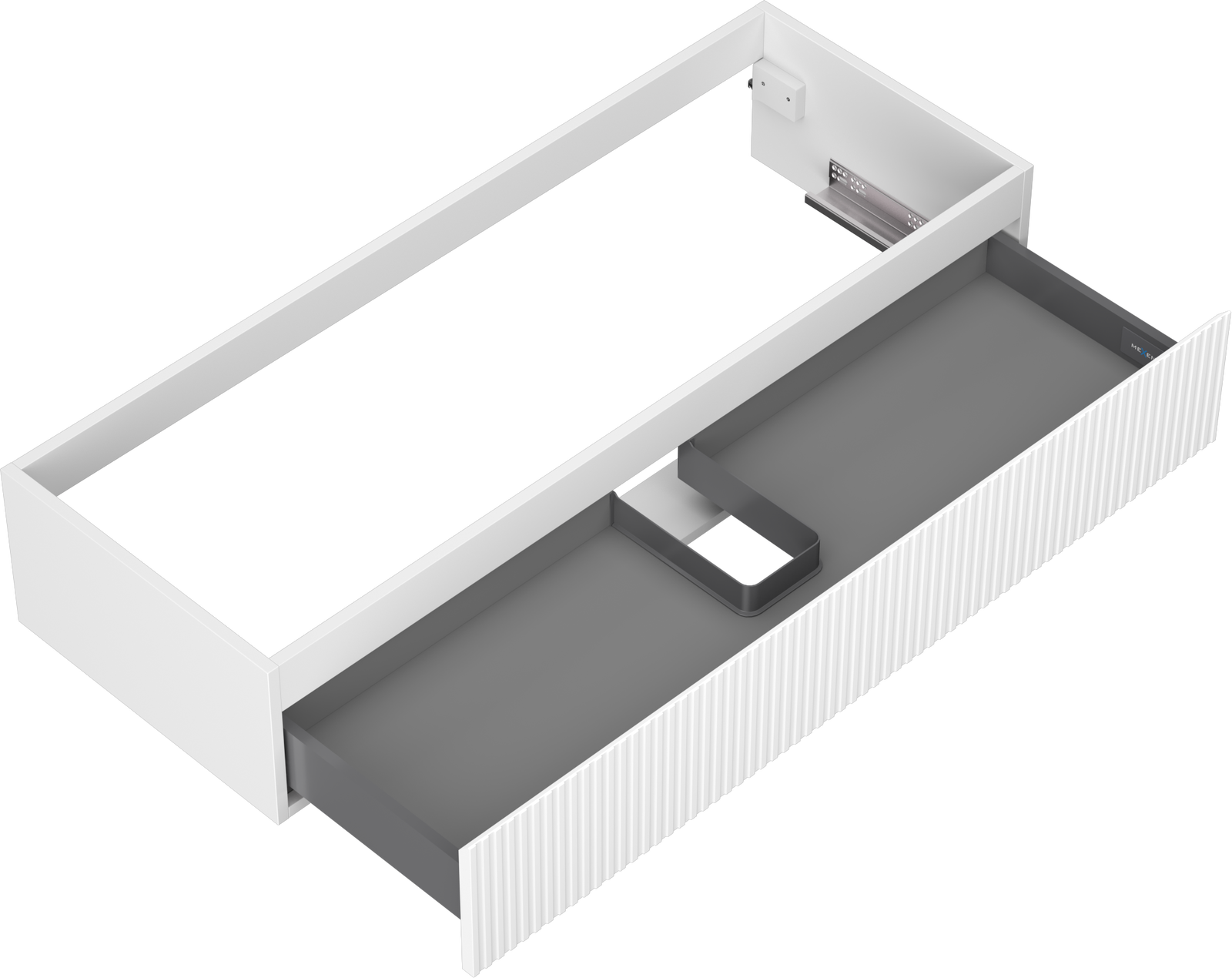 Η εγκοπή στο συρτάρι είναι σχεδιασμένη με τέτοιο τρόπο, ώστε να φιλοξενεί το σιφόνι, το οποίο είναι απαραίτητο στις εγκαταστάσεις νιπτήρων. Έτσι, το έπιπλο μπορεί να εγκατασταθεί πλήρως λειτουργικά, χωρίς την ανάγκη παραίτησης από χώρο στο συρτάρι υπέρ της εγκατάστασης.