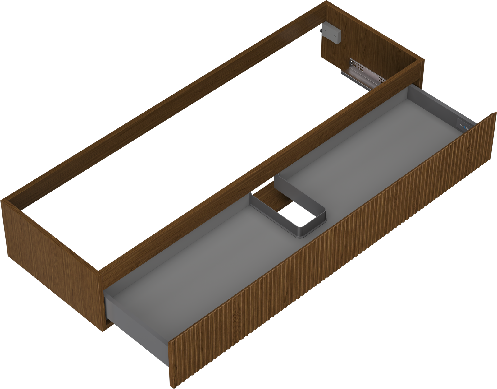 Η εγκοπή στο συρτάρι είναι σχεδιασμένη με τέτοιο τρόπο, ώστε να φιλοξενεί το σιφόνι, το οποίο είναι απαραίτητο στις εγκαταστάσεις νιπτήρων. Έτσι, το έπιπλο μπορεί να εγκατασταθεί πλήρως λειτουργικά, χωρίς την ανάγκη παραίτησης από χώρο στο συρτάρι υπέρ της εγκατάστασης.