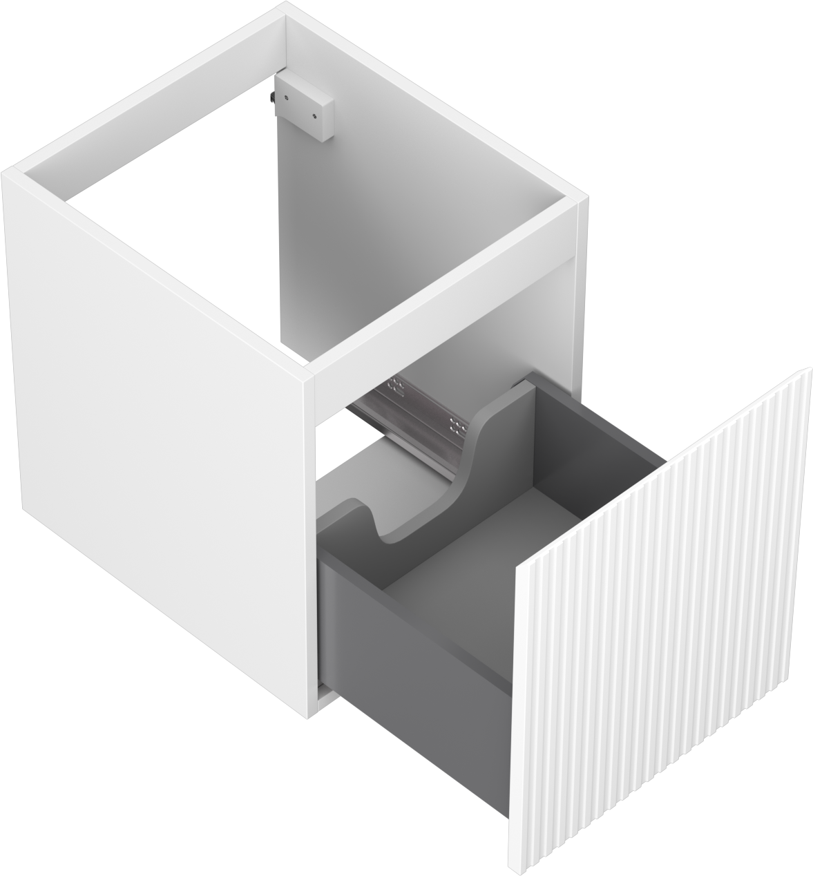 Η εγκοπή στο συρτάρι είναι σχεδιασμένη με τέτοιο τρόπο, ώστε να φιλοξενεί το σιφόνι, το οποίο είναι απαραίτητο στις εγκαταστάσεις νιπτήρων. Έτσι, το έπιπλο μπορεί να εγκατασταθεί πλήρως λειτουργικά, χωρίς την ανάγκη παραίτησης από χώρο στο συρτάρι υπέρ της εγκατάστασης.