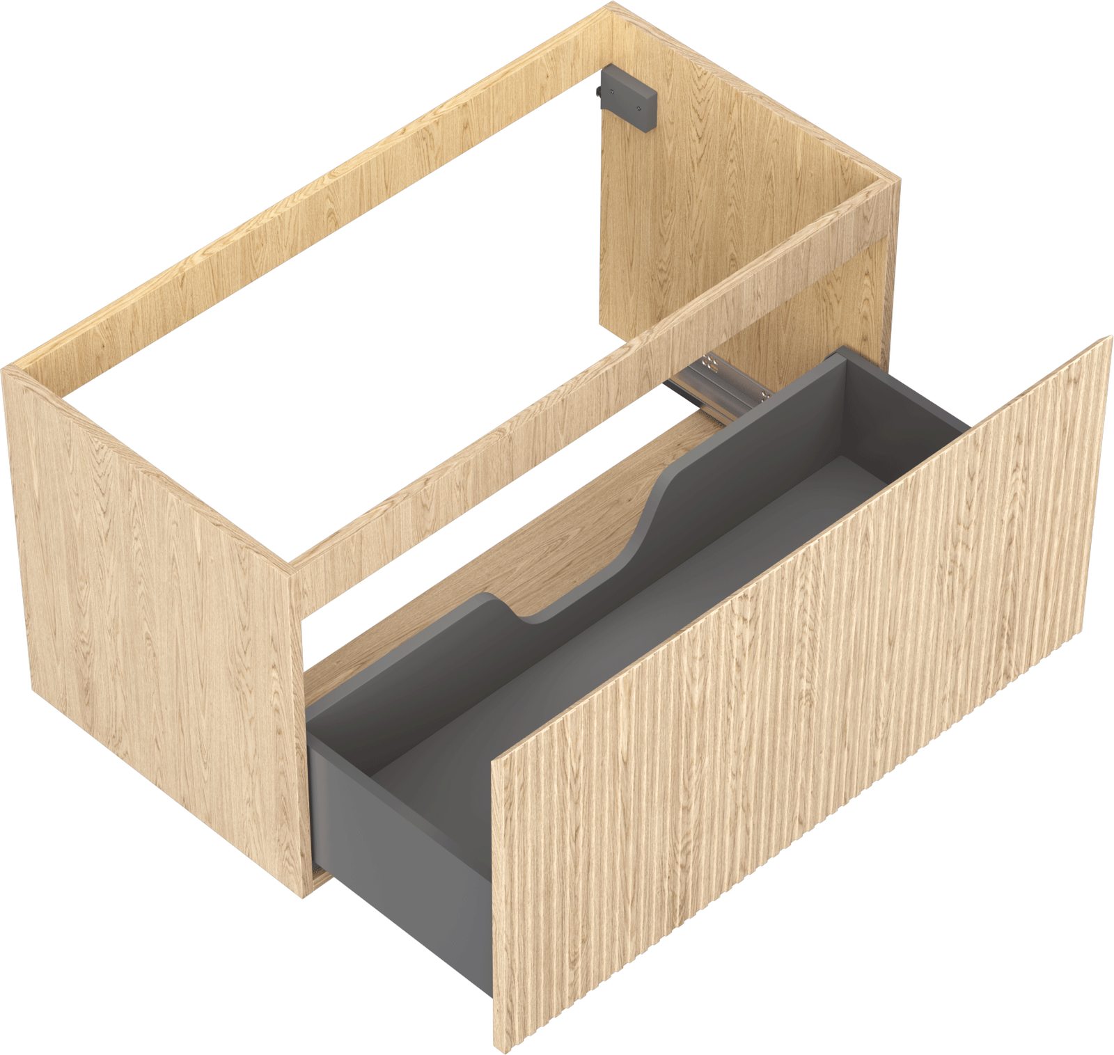 Η εγκοπή στο συρτάρι είναι σχεδιασμένη με τέτοιο τρόπο, ώστε να φιλοξενεί το σιφόνι, το οποίο είναι απαραίτητο στις εγκαταστάσεις νιπτήρων. Έτσι, το έπιπλο μπορεί να εγκατασταθεί πλήρως λειτουργικά, χωρίς την ανάγκη παραίτησης από χώρο στο συρτάρι υπέρ της εγκατάστασης.