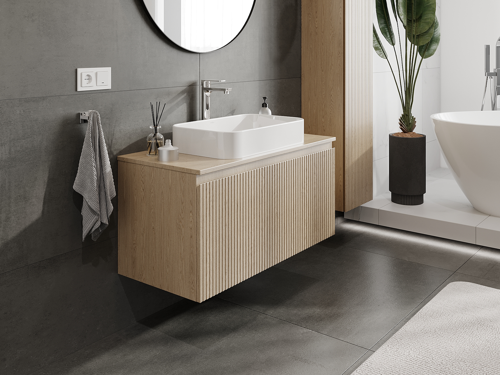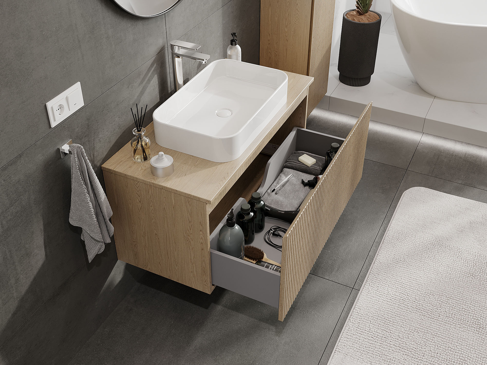 Mexen Rivel ντουλάπι μπάνιου για νιπτήρα 100 εκ., 1 συρτάρι, αυλακωτό, δρυς