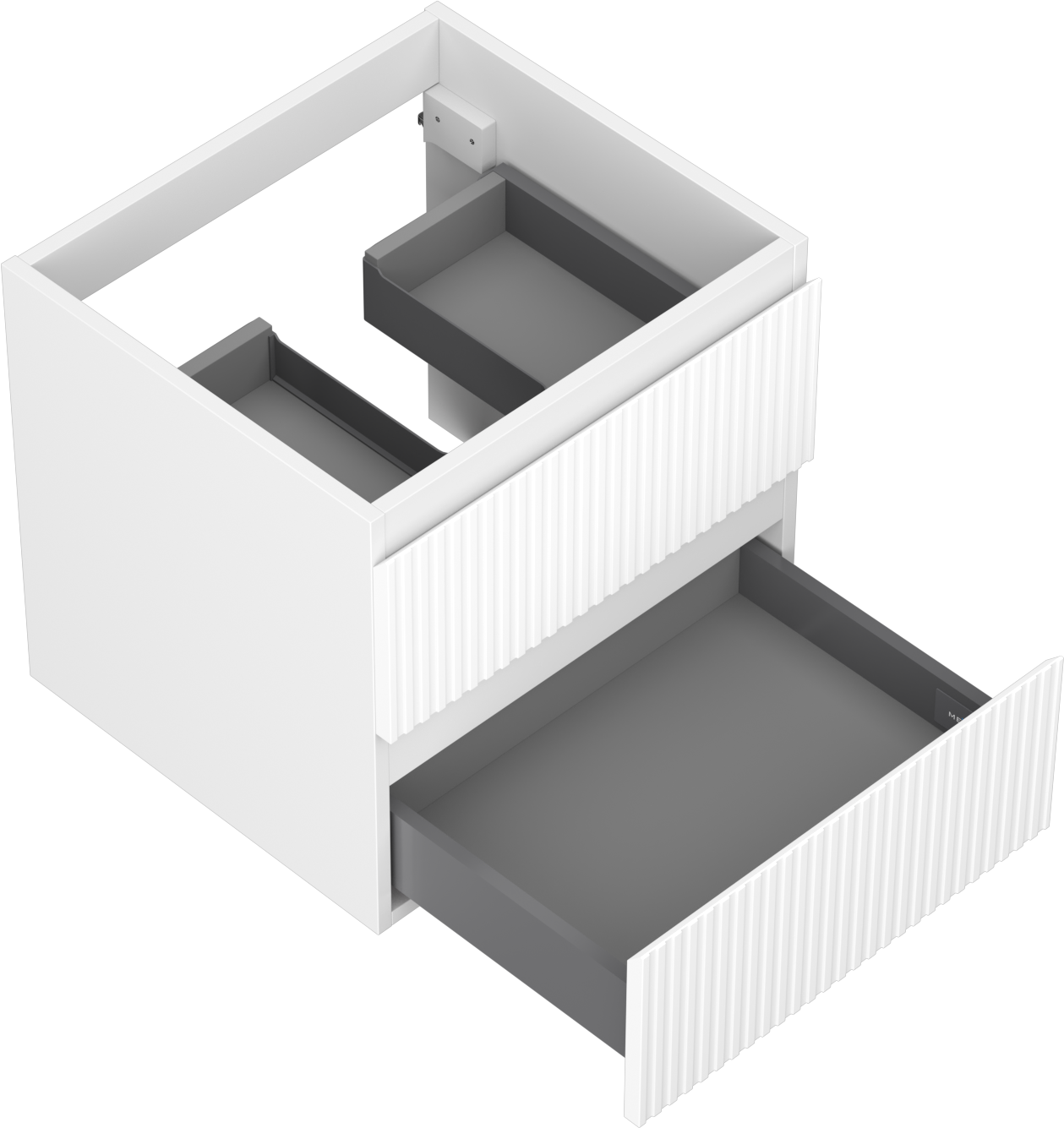 Η εγκοπή στο συρτάρι είναι σχεδιασμένη με τέτοιο τρόπο, ώστε να φιλοξενεί το σιφόνι, το οποίο είναι απαραίτητο στις εγκαταστάσεις νιπτήρων. Έτσι, το έπιπλο μπορεί να εγκατασταθεί πλήρως λειτουργικά, χωρίς την ανάγκη παραίτησης από χώρο στο συρτάρι υπέρ της εγκατάστασης.