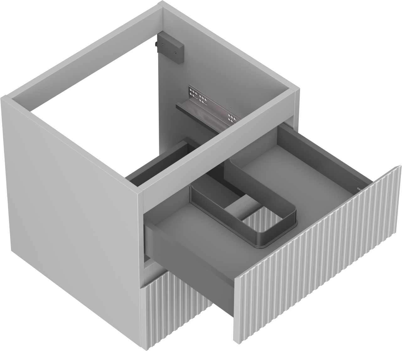 Η εγκοπή στο συρτάρι είναι σχεδιασμένη με τέτοιο τρόπο, ώστε να φιλοξενεί το σιφόνι, το οποίο είναι απαραίτητο στις εγκαταστάσεις νιπτήρων. Έτσι, το έπιπλο μπορεί να εγκατασταθεί πλήρως λειτουργικά, χωρίς την ανάγκη παραίτησης από χώρο στο συρτάρι υπέρ της εγκατάστασης.