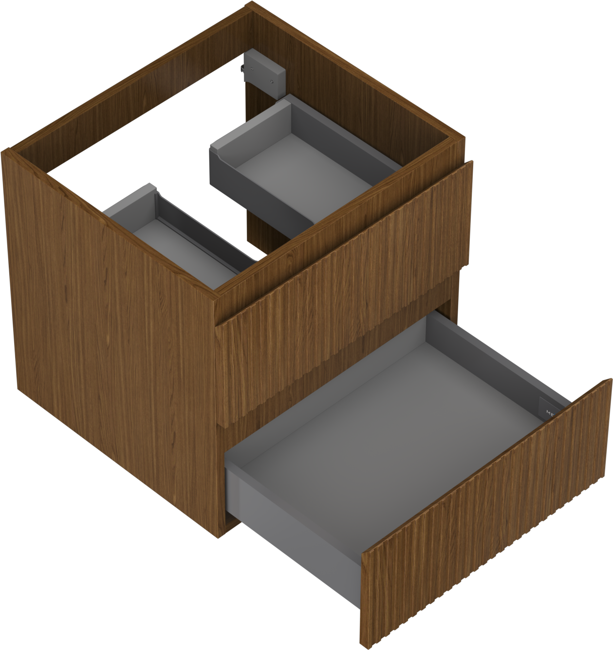 Η εγκοπή στο συρτάρι είναι σχεδιασμένη με τέτοιο τρόπο, ώστε να φιλοξενεί το σιφόνι, το οποίο είναι απαραίτητο στις εγκαταστάσεις νιπτήρων. Έτσι, το έπιπλο μπορεί να εγκατασταθεί πλήρως λειτουργικά, χωρίς την ανάγκη παραίτησης από χώρο στο συρτάρι υπέρ της εγκατάστασης.