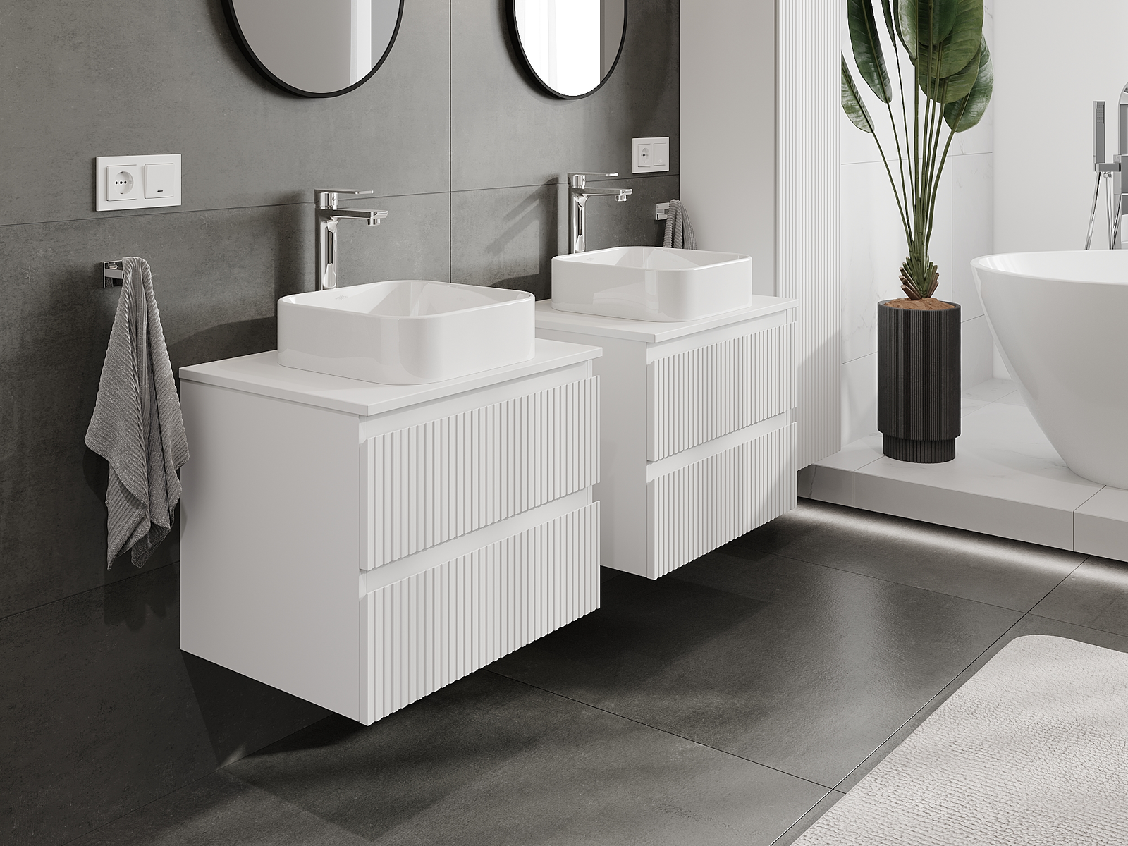 Τα αρθρωτά έπιπλα μπάνιου μας μπορούν να συνδυαστούν μεταξύ τους σε διάφορες χρωματικές διαμορφώσεις, επιτρέποντας πλήρη εξατομίκευση. Μπορείτε να επιλέξετε τόσο την εμφάνιση όσο και τις λειτουργίες των επιμέρους στοιχείων, ώστε να προσαρμόσετε τα έπιπλα στις δικές σας στιλιστικές και λειτουργικές προτιμήσεις.