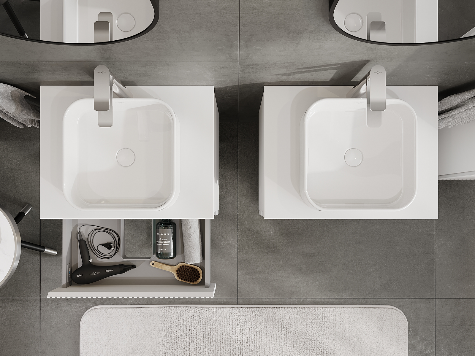 Η εγκοπή στο συρτάρι είναι σχεδιασμένη με τέτοιο τρόπο, ώστε να φιλοξενεί το σιφόνι, το οποίο είναι απαραίτητο στις εγκαταστάσεις νιπτήρων. Έτσι, το έπιπλο μπορεί να εγκατασταθεί πλήρως λειτουργικά, χωρίς την ανάγκη παραίτησης από χώρο στο συρτάρι υπέρ της εγκατάστασης.