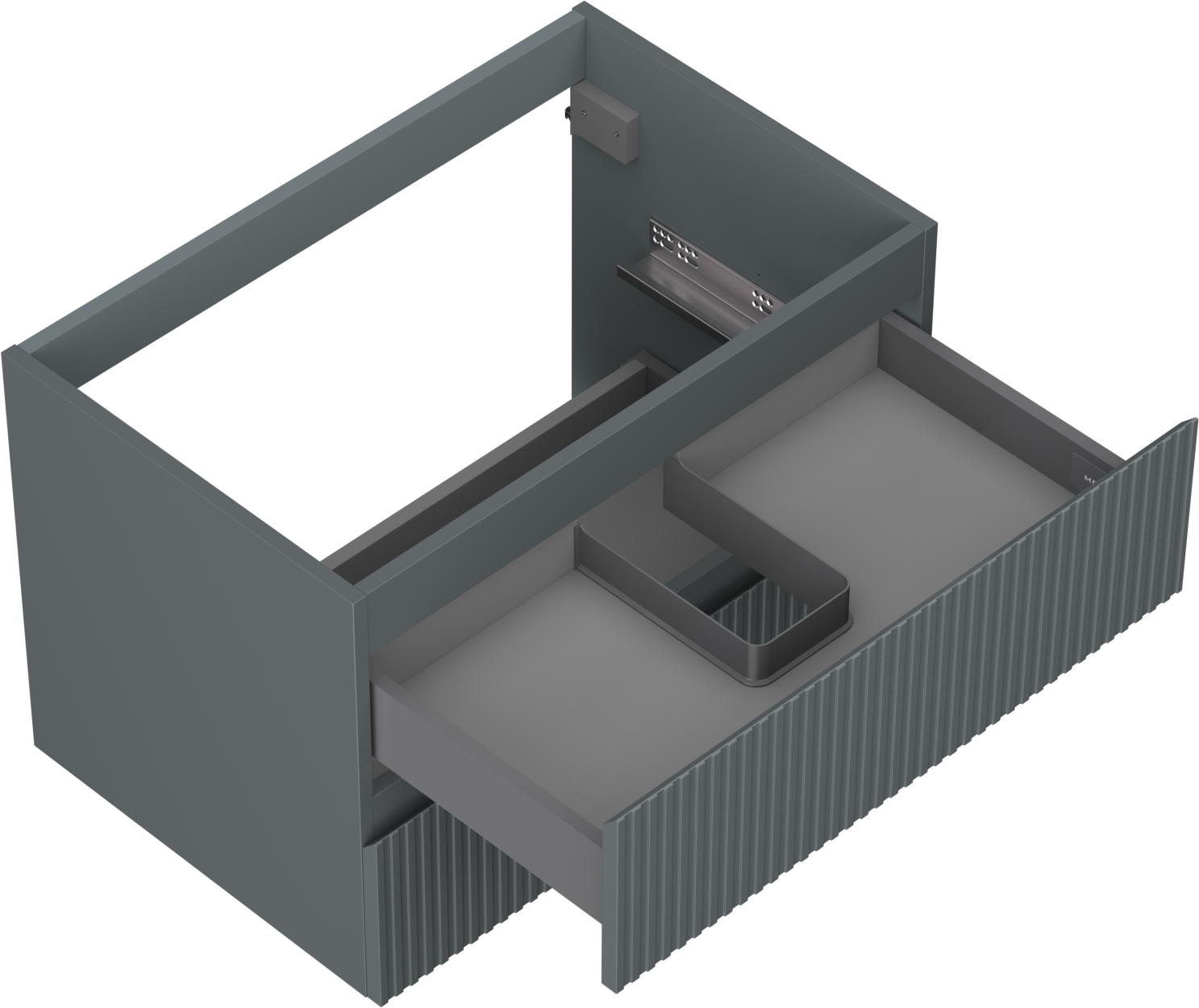 Η εγκοπή στο συρτάρι είναι σχεδιασμένη με τέτοιο τρόπο, ώστε να φιλοξενεί το σιφόνι, το οποίο είναι απαραίτητο στις εγκαταστάσεις νιπτήρων. Έτσι, το έπιπλο μπορεί να εγκατασταθεί πλήρως λειτουργικά, χωρίς την ανάγκη παραίτησης από χώρο στο συρτάρι υπέρ της εγκατάστασης.