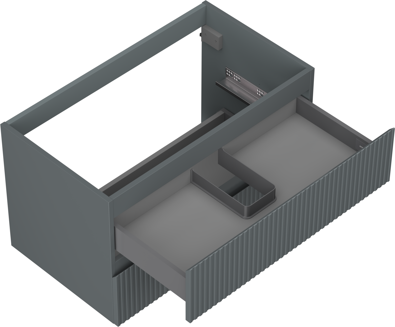 Η εγκοπή στο συρτάρι είναι σχεδιασμένη με τέτοιο τρόπο, ώστε να φιλοξενεί το σιφόνι, το οποίο είναι απαραίτητο στις εγκαταστάσεις νιπτήρων. Έτσι, το έπιπλο μπορεί να εγκατασταθεί πλήρως λειτουργικά, χωρίς την ανάγκη παραίτησης από χώρο στο συρτάρι υπέρ της εγκατάστασης.