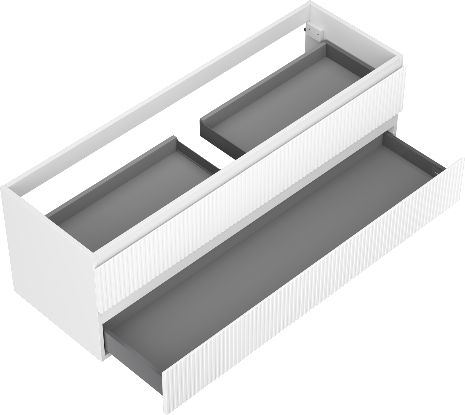Η εγκοπή στο συρτάρι είναι σχεδιασμένη με τέτοιο τρόπο, ώστε να φιλοξενεί το σιφόνι, το οποίο είναι απαραίτητο στις εγκαταστάσεις νιπτήρων. Έτσι, το έπιπλο μπορεί να εγκατασταθεί πλήρως λειτουργικά, χωρίς την ανάγκη παραίτησης από χώρο στο συρτάρι υπέρ της εγκατάστασης.
