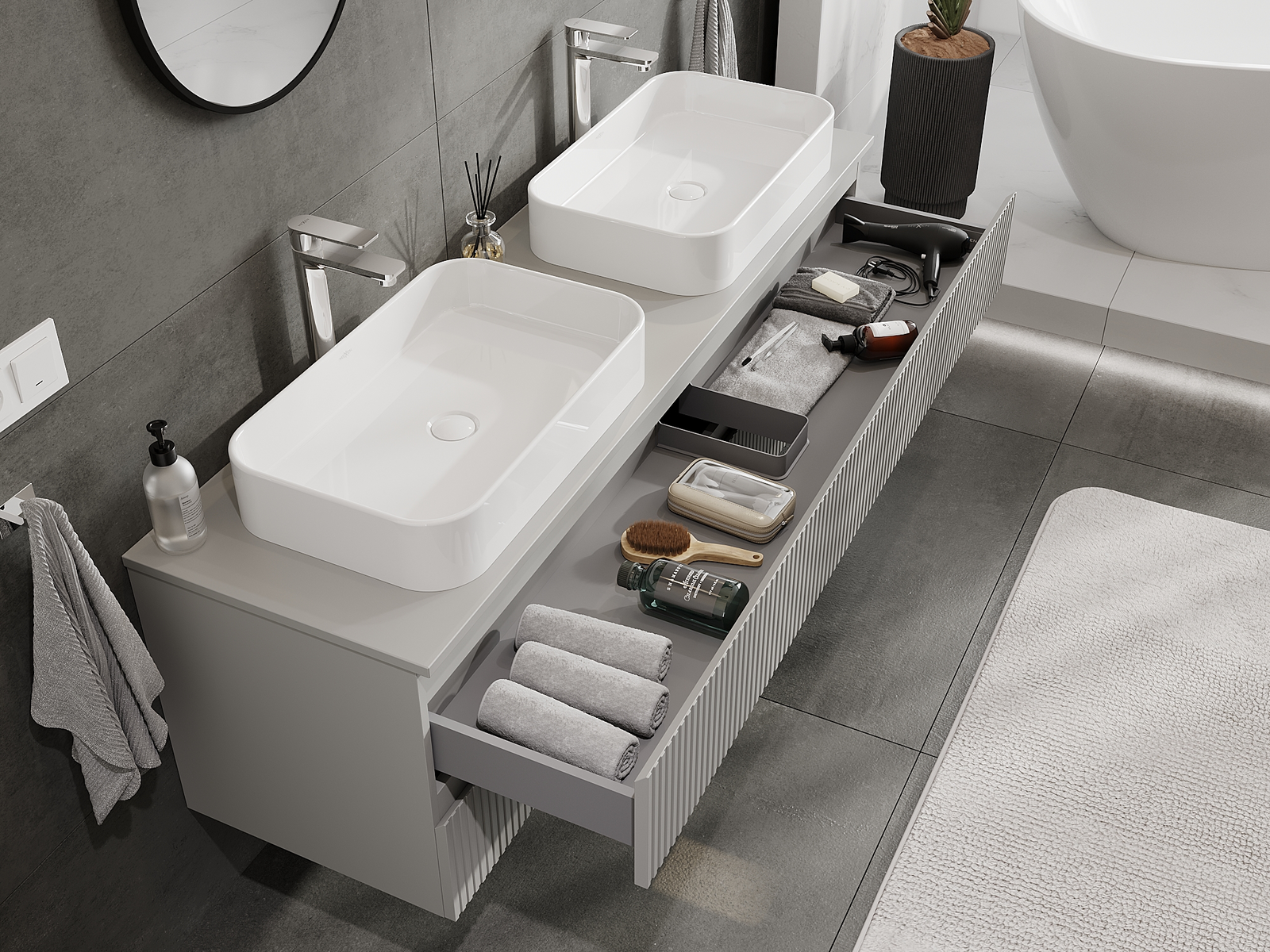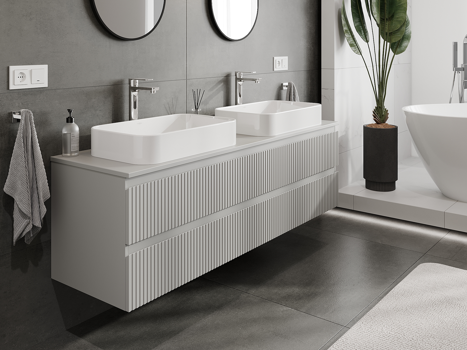 Τα αρθρωτά έπιπλα μπάνιου μας μπορούν να συνδυαστούν μεταξύ τους σε διάφορες χρωματικές διαμορφώσεις, επιτρέποντας πλήρη εξατομίκευση. Μπορείτε να επιλέξετε τόσο την εμφάνιση όσο και τις λειτουργίες των επιμέρους στοιχείων, ώστε να προσαρμόσετε τα έπιπλα στις δικές σας στιλιστικές και λειτουργικές προτιμήσεις.