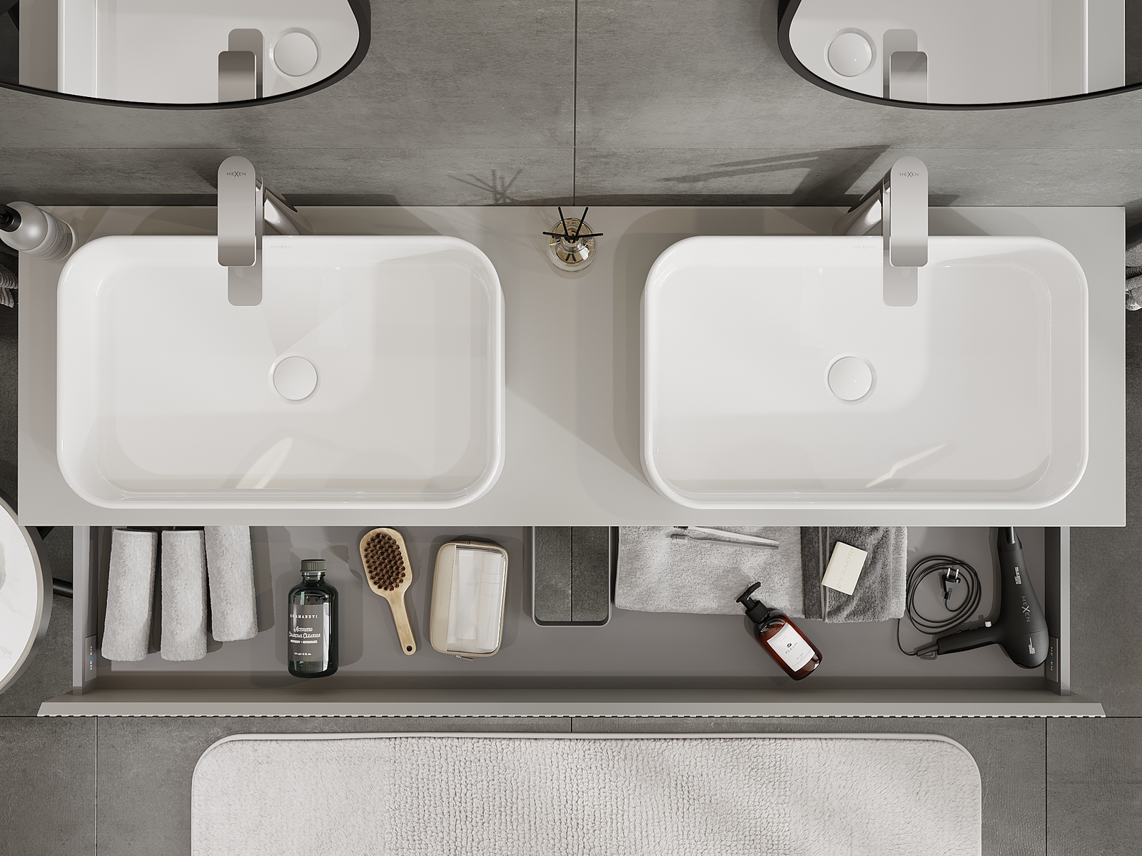 Η εγκοπή στο συρτάρι είναι σχεδιασμένη με τέτοιο τρόπο, ώστε να φιλοξενεί το σιφόνι, το οποίο είναι απαραίτητο στις εγκαταστάσεις νιπτήρων. Έτσι, το έπιπλο μπορεί να εγκατασταθεί πλήρως λειτουργικά, χωρίς την ανάγκη παραίτησης από χώρο στο συρτάρι υπέρ της εγκατάστασης.