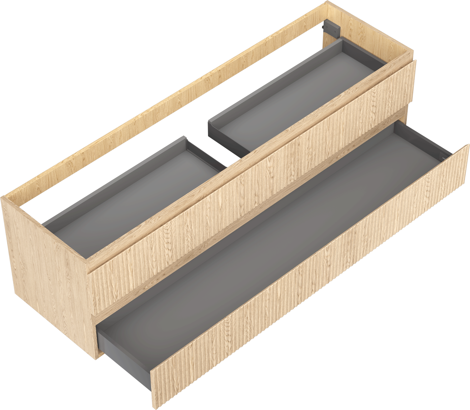 Η εγκοπή στο συρτάρι είναι σχεδιασμένη με τέτοιο τρόπο, ώστε να φιλοξενεί το σιφόνι, το οποίο είναι απαραίτητο στις εγκαταστάσεις νιπτήρων. Έτσι, το έπιπλο μπορεί να εγκατασταθεί πλήρως λειτουργικά, χωρίς την ανάγκη παραίτησης από χώρο στο συρτάρι υπέρ της εγκατάστασης.