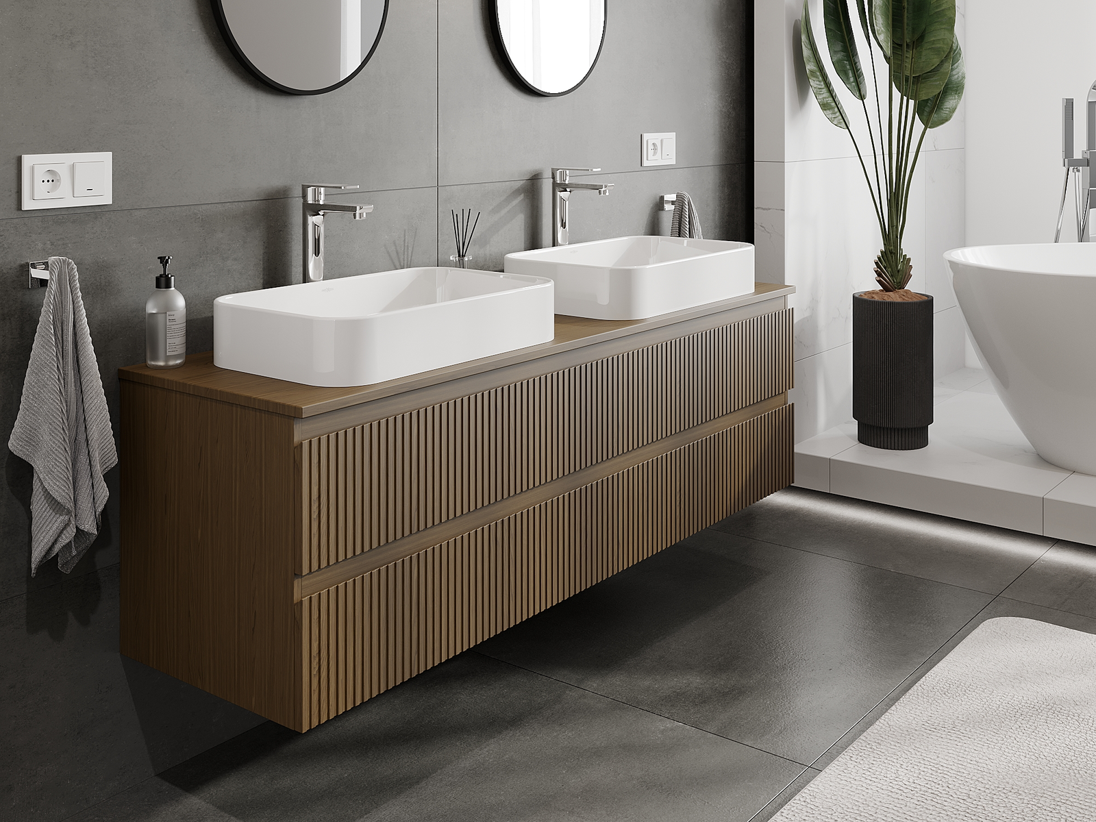 Τα αρθρωτά έπιπλα μπάνιου μας μπορούν να συνδυαστούν μεταξύ τους σε διάφορες χρωματικές διαμορφώσεις, επιτρέποντας πλήρη εξατομίκευση. Μπορείτε να επιλέξετε τόσο την εμφάνιση όσο και τις λειτουργίες των επιμέρους στοιχείων, ώστε να προσαρμόσετε τα έπιπλα στις δικές σας στιλιστικές και λειτουργικές προτιμήσεις.