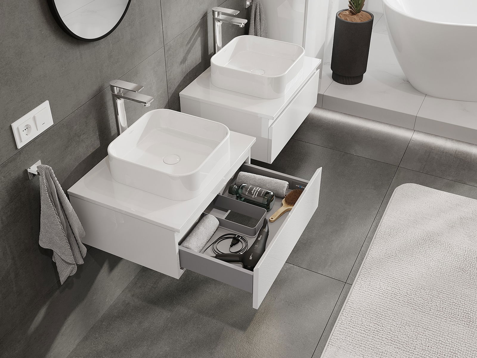 Mexen Orio ντουλάπι μπάνιου κάτω από νιπτήρα 60 εκ. με πάγκο, 1 συρτάρι, λευκή