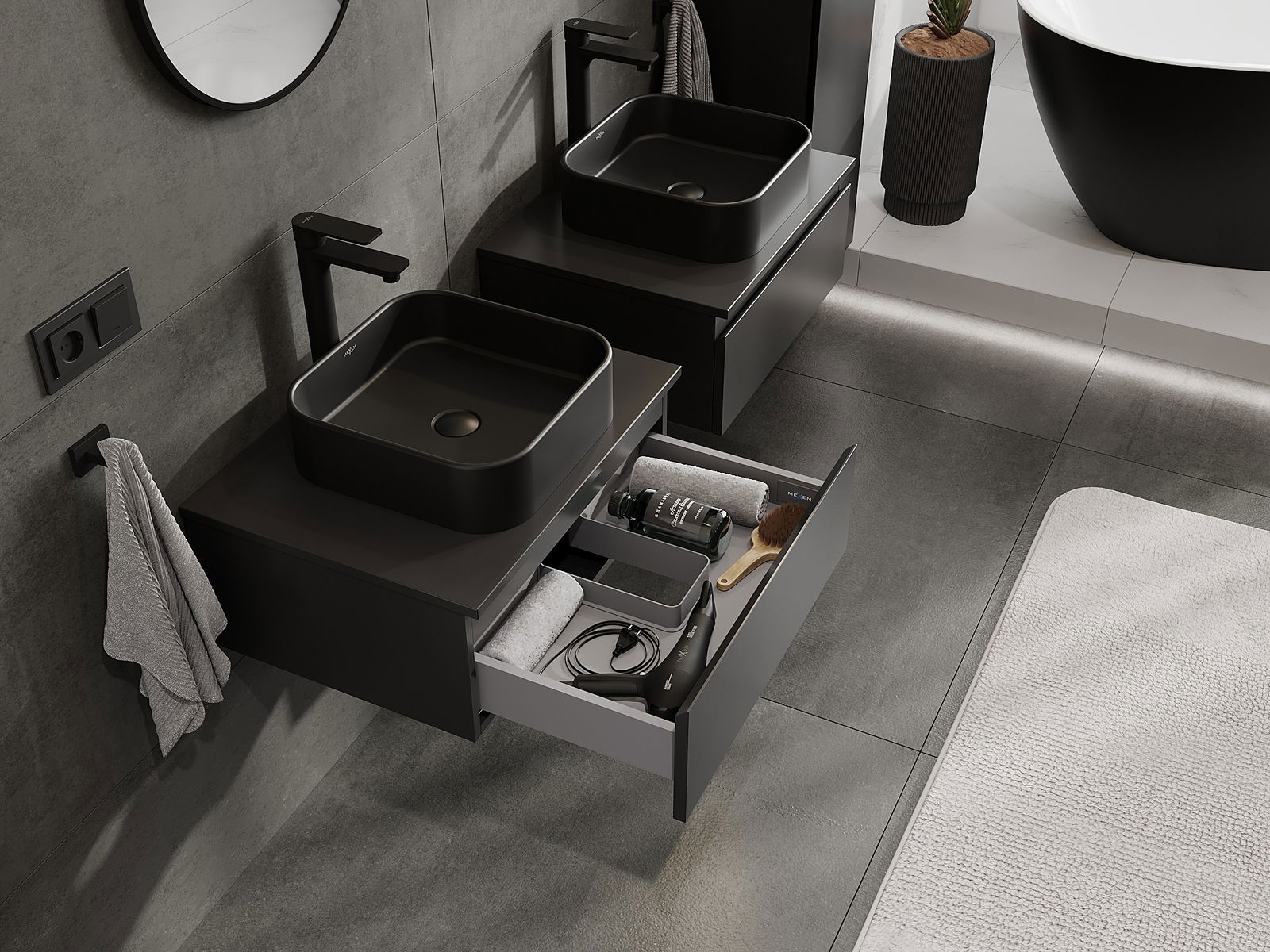 Mexen Orio ντουλάπι μπάνιου υπονιπτήρα 60 εκ με πάγκο, 1 συρτάρι, μαύρο ματ