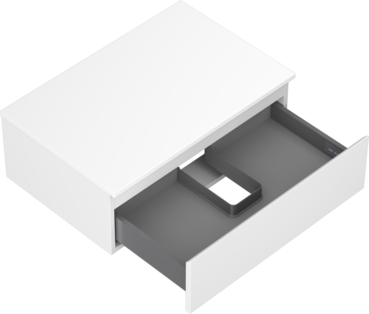 Η εγκοπή στο συρτάρι είναι σχεδιασμένη με τέτοιο τρόπο, ώστε να φιλοξενεί το σιφόνι, το οποίο είναι απαραίτητο στις εγκαταστάσεις νιπτήρων. Έτσι, το έπιπλο μπορεί να εγκατασταθεί πλήρως λειτουργικά, χωρίς την ανάγκη παραίτησης από χώρο στο συρτάρι υπέρ της εγκατάστασης.
