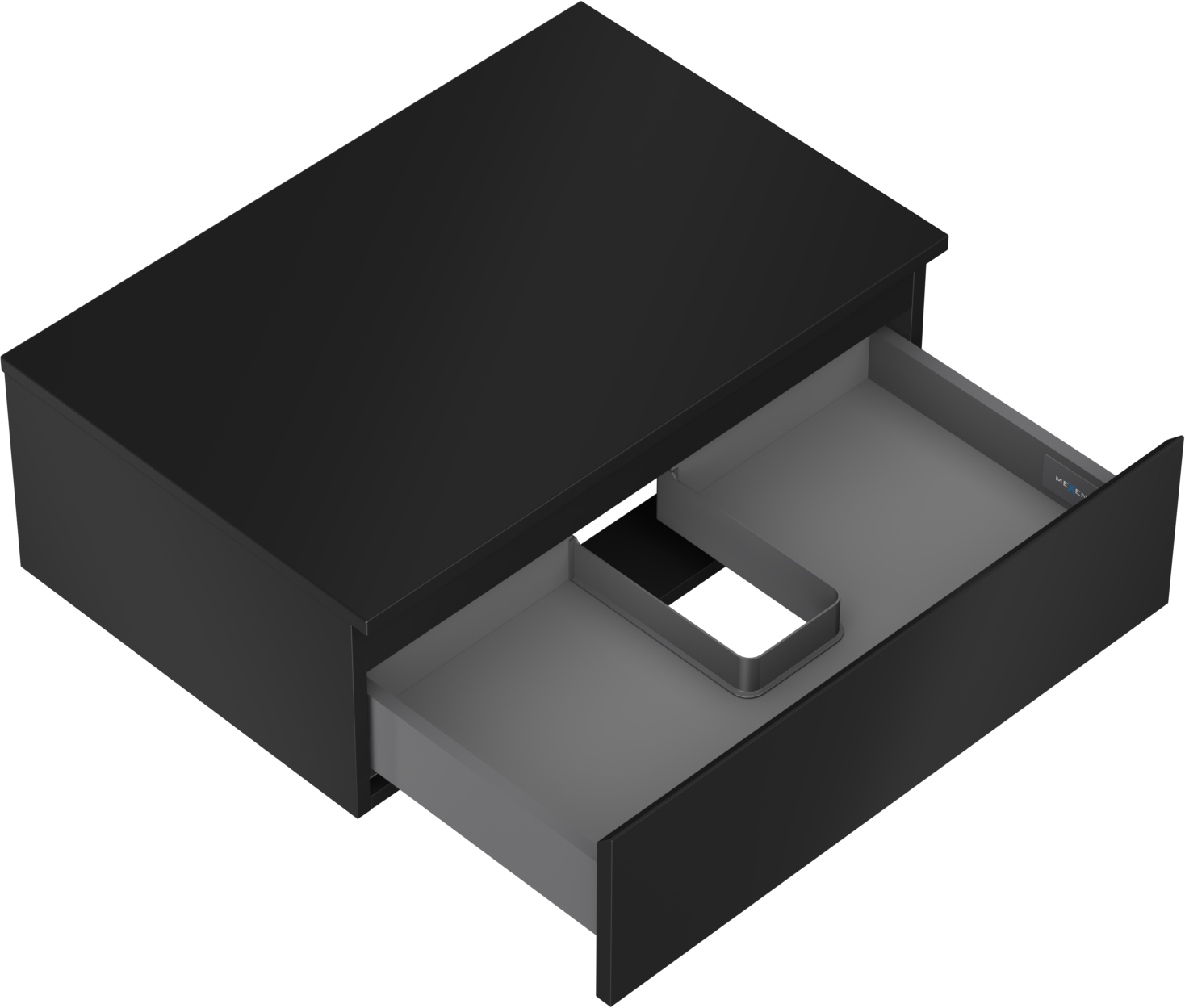 Η εγκοπή στο συρτάρι είναι σχεδιασμένη με τέτοιο τρόπο, ώστε να φιλοξενεί το σιφόνι, το οποίο είναι απαραίτητο στις εγκαταστάσεις νιπτήρων. Έτσι, το έπιπλο μπορεί να εγκατασταθεί πλήρως λειτουργικά, χωρίς την ανάγκη παραίτησης από χώρο στο συρτάρι υπέρ της εγκατάστασης.