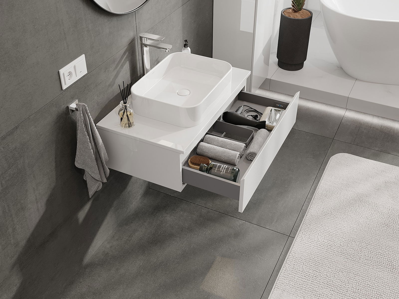 Mexen Orio ντουλάπι μπάνιου 80 εκ. με πάγκο, 1 συρτάρι, λευκή γυαλιστερή