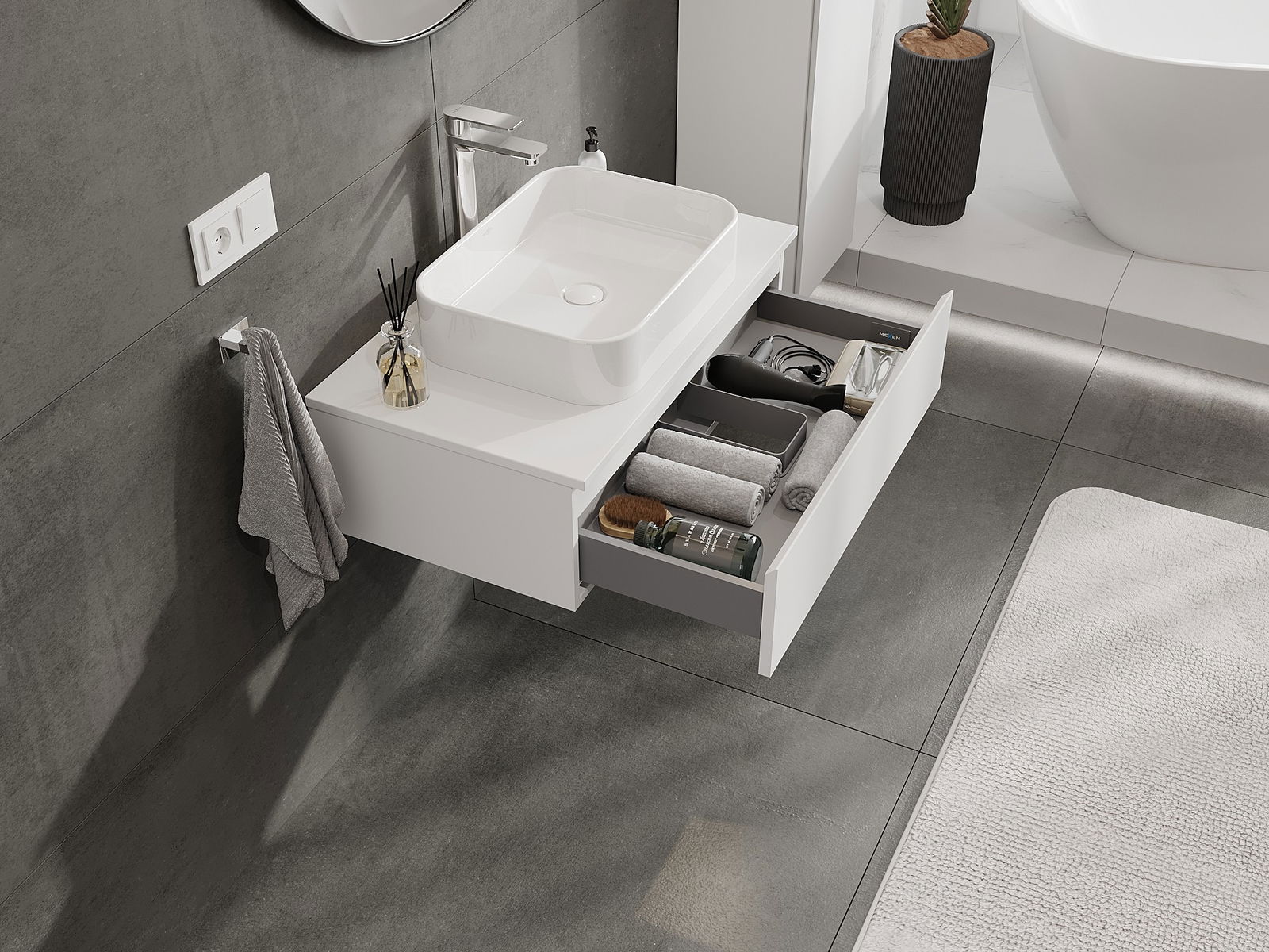 Mexen Orio ντουλάπι μπάνιου κάτω από τον νιπτήρα 80 cm με πάγκο, 1 συρτάρι,