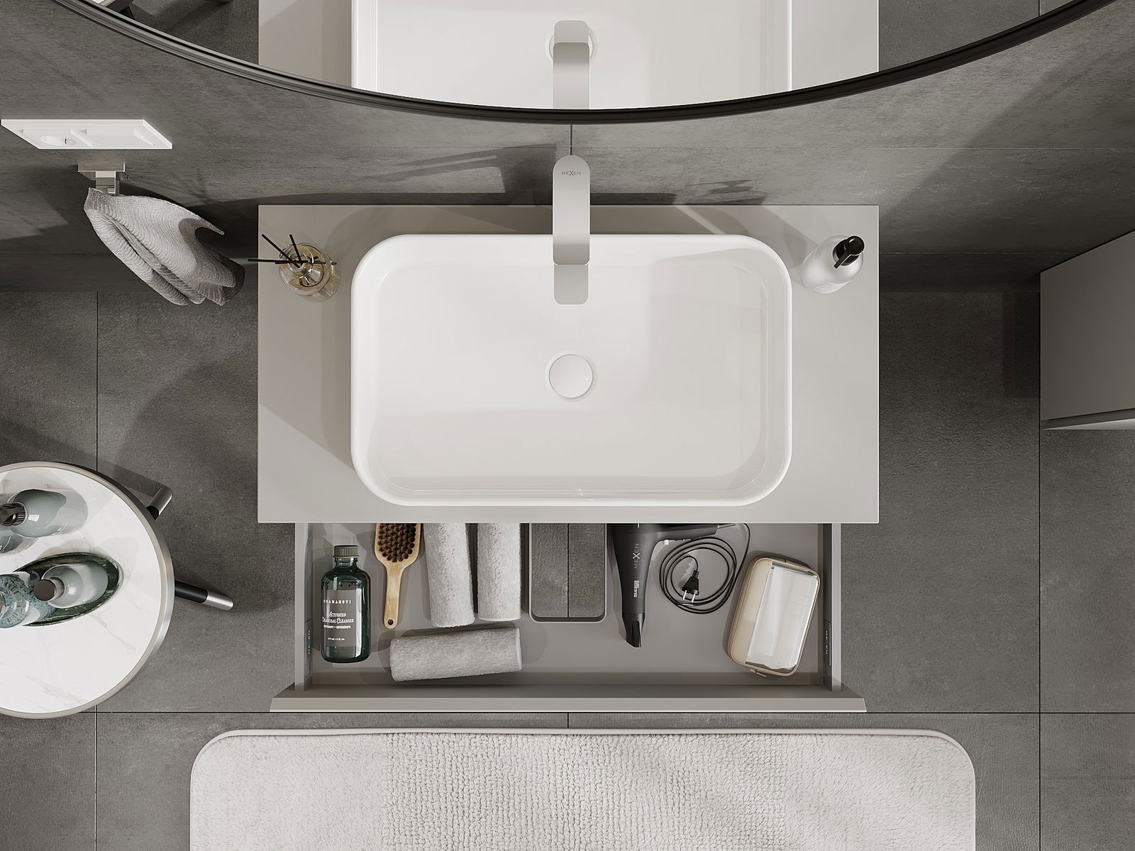 Mexen Orio ντουλάπι μπάνιου για νιπτήρα 90 cm με επιφάνεια, 1 συρτάρι, γκρι