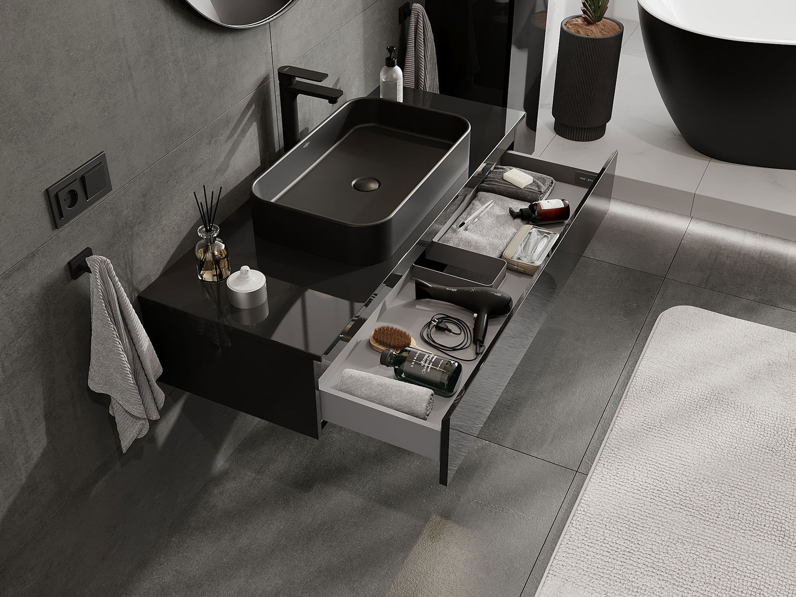 Mexen Orio ντουλάπι μπάνιου για νιπτήρα 120 cm με επιφάνεια, 1 συρτάρι, μαύρο