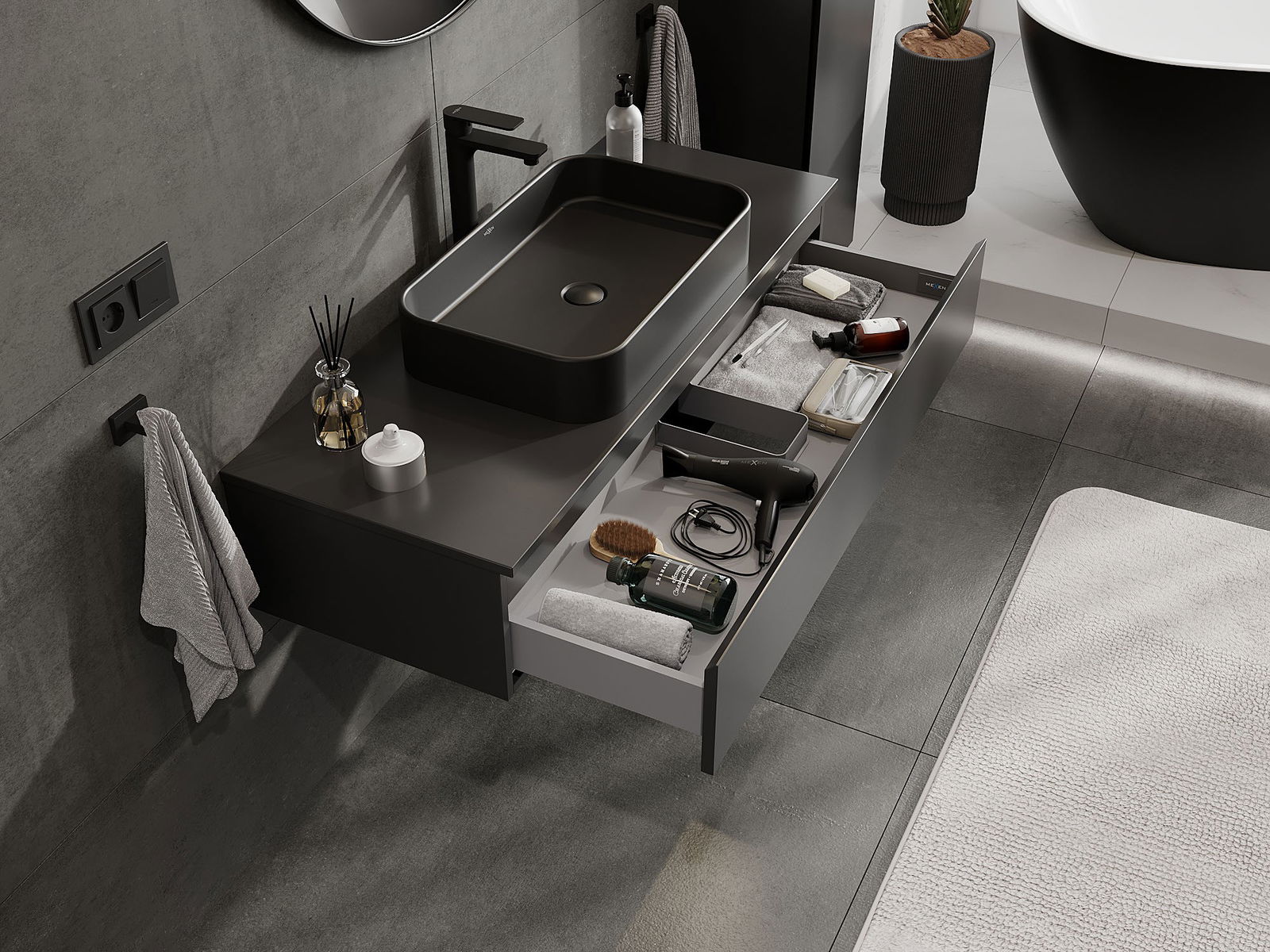 Mexen Orio ντουλάπι μπάνιου για νιπτήρα 120 cm με επιφάνεια, 1 συρτάρι, μαύρο