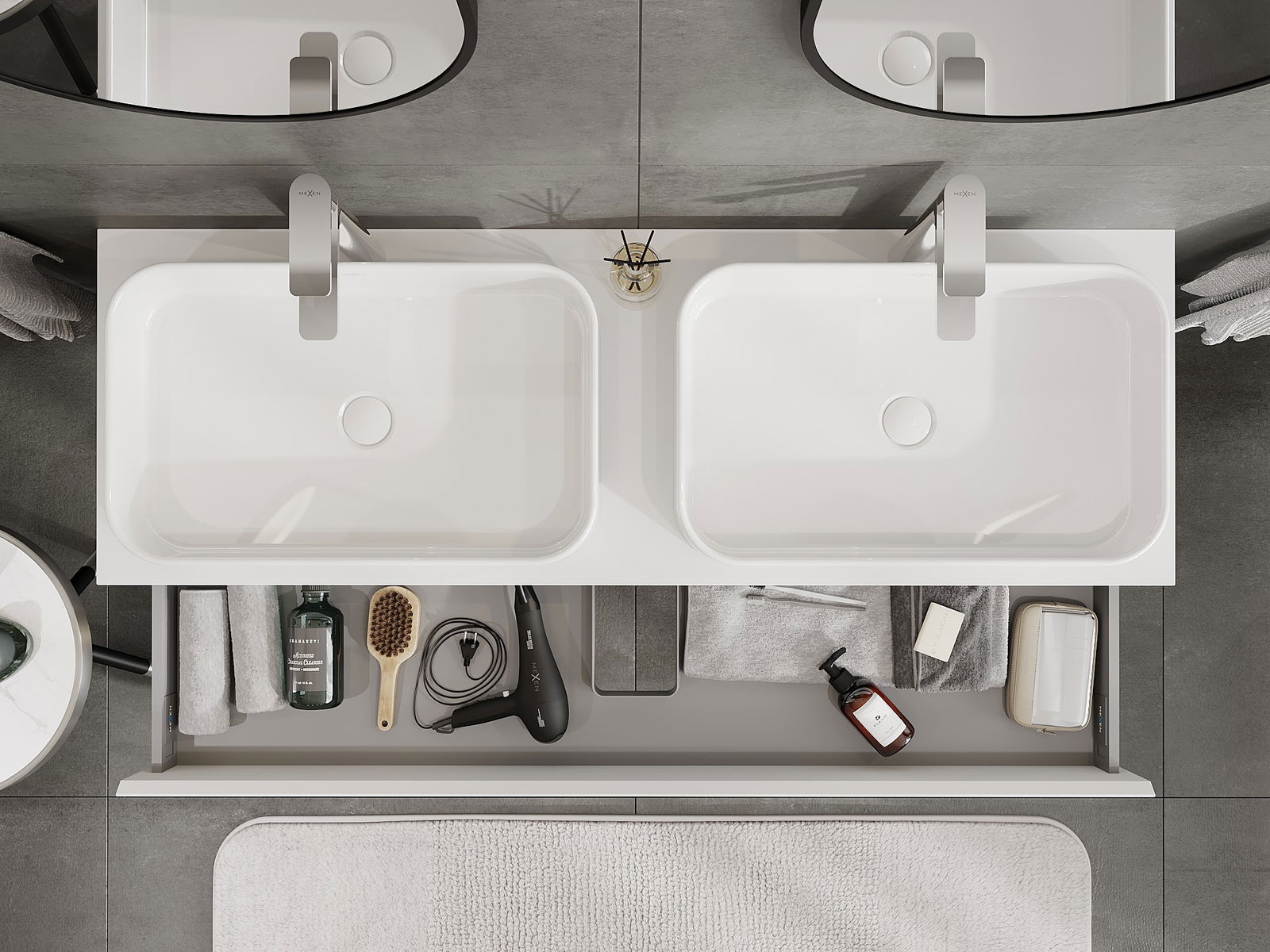 Τα αρθρωτά έπιπλα μπάνιου μας μπορούν να συνδυαστούν μεταξύ τους σε διάφορες χρωματικές διαμορφώσεις, επιτρέποντας πλήρη εξατομίκευση. Μπορείτε να επιλέξετε τόσο την εμφάνιση όσο και τις λειτουργίες των επιμέρους στοιχείων, ώστε να προσαρμόσετε τα έπιπλα στις δικές σας στιλιστικές και λειτουργικές προτιμήσεις.