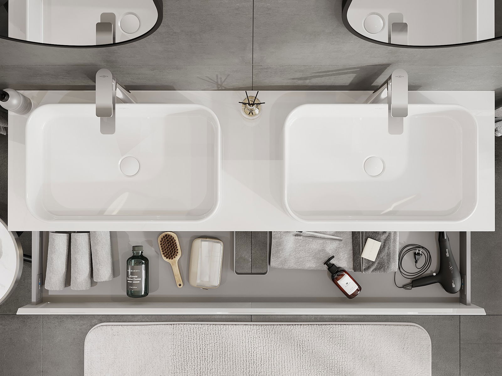 Mexen Orio ντουλάπι μπάνιου κάτω από νιπτήρα 160 cm με πάγκο, 1 συρτάρι, λευκή