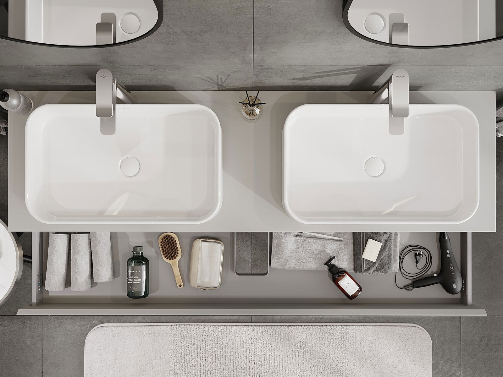 Τα αρθρωτά έπιπλα μπάνιου μας μπορούν να συνδυαστούν μεταξύ τους σε διάφορες χρωματικές διαμορφώσεις, επιτρέποντας πλήρη εξατομίκευση. Μπορείτε να επιλέξετε τόσο την εμφάνιση όσο και τις λειτουργίες των επιμέρους στοιχείων, ώστε να προσαρμόσετε τα έπιπλα στις δικές σας στιλιστικές και λειτουργικές προτιμήσεις.