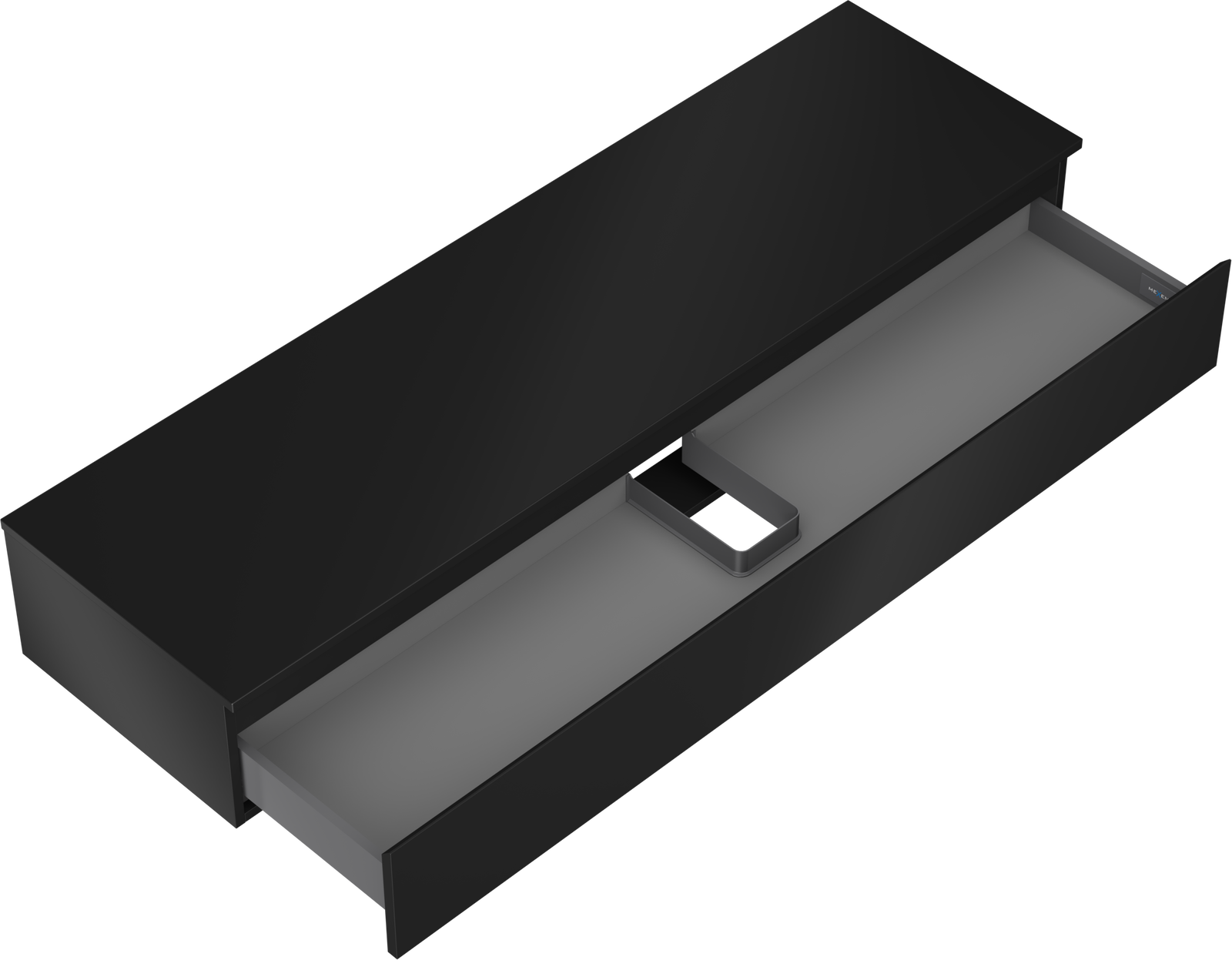 Η εγκοπή στο συρτάρι είναι σχεδιασμένη με τέτοιο τρόπο, ώστε να φιλοξενεί το σιφόνι, το οποίο είναι απαραίτητο στις εγκαταστάσεις νιπτήρων. Έτσι, το έπιπλο μπορεί να εγκατασταθεί πλήρως λειτουργικά, χωρίς την ανάγκη παραίτησης από χώρο στο συρτάρι υπέρ της εγκατάστασης.