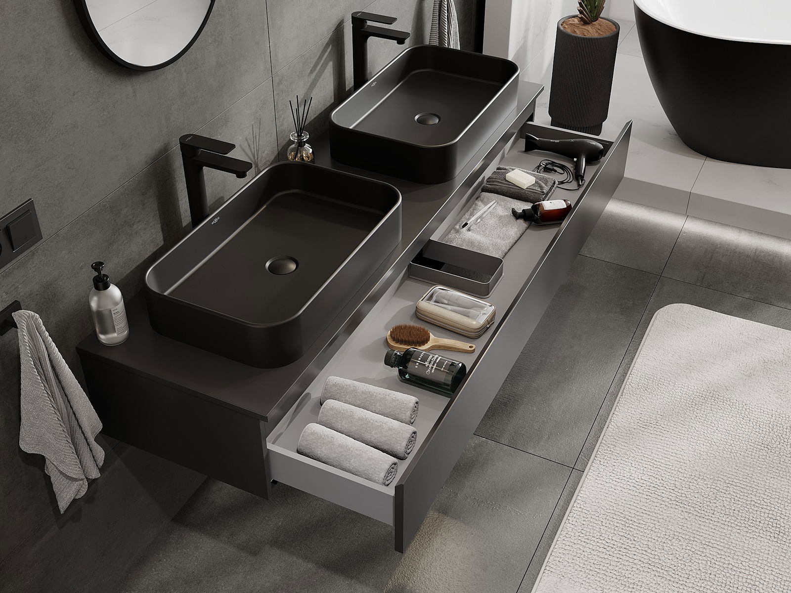 Τα αρθρωτά έπιπλα μπάνιου μας μπορούν να συνδυαστούν μεταξύ τους σε διάφορες χρωματικές διαμορφώσεις, επιτρέποντας πλήρη εξατομίκευση. Μπορείτε να επιλέξετε τόσο την εμφάνιση όσο και τις λειτουργίες των επιμέρους στοιχείων, ώστε να προσαρμόσετε τα έπιπλα στις δικές σας στιλιστικές και λειτουργικές προτιμήσεις.