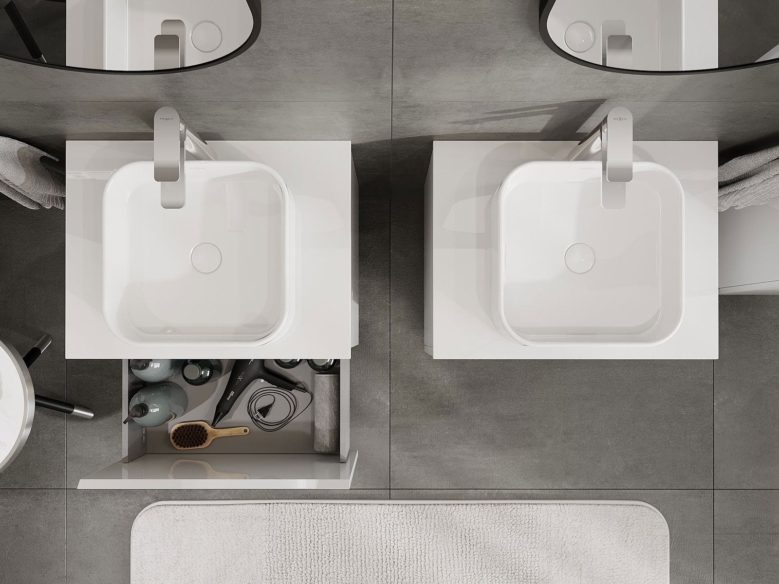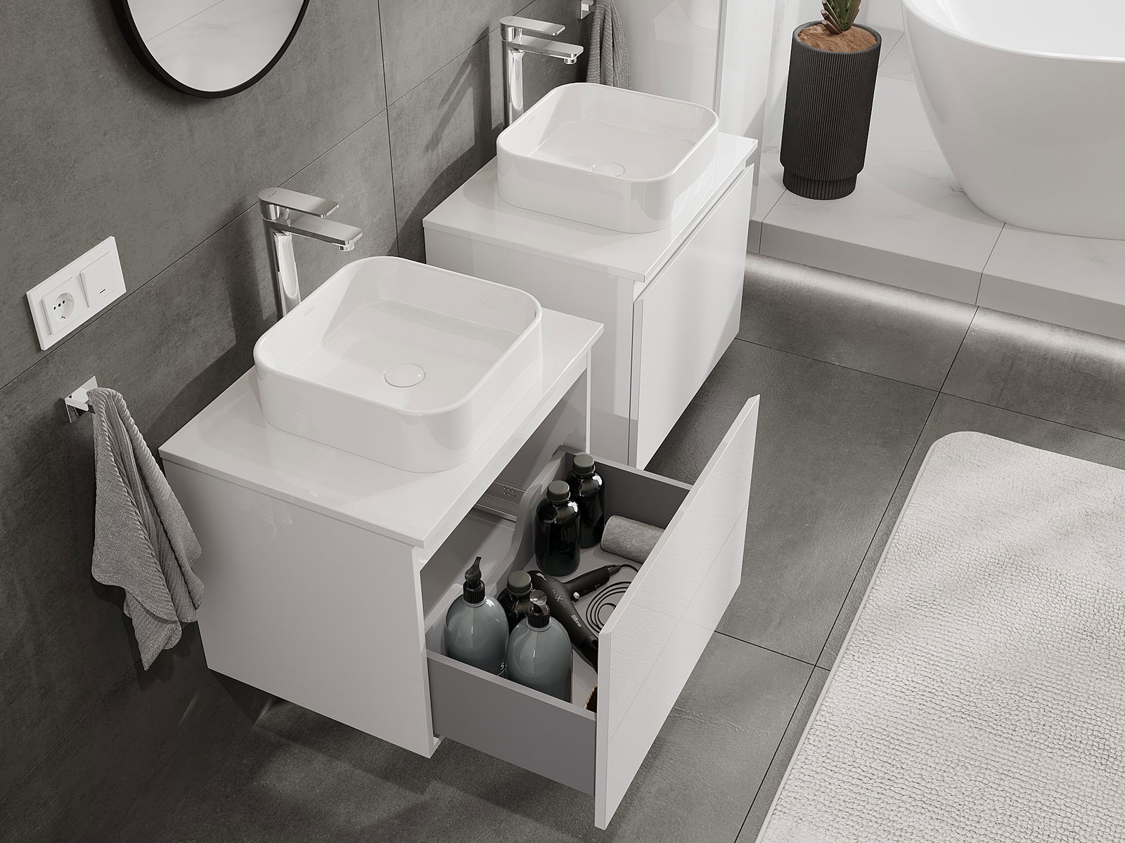 Τα αρθρωτά έπιπλα μπάνιου μας μπορούν να συνδυαστούν μεταξύ τους σε διάφορες χρωματικές διαμορφώσεις, επιτρέποντας πλήρη εξατομίκευση. Μπορείτε να επιλέξετε τόσο την εμφάνιση όσο και τις λειτουργίες των επιμέρους στοιχείων, ώστε να προσαρμόσετε τα έπιπλα στις δικές σας στιλιστικές και λειτουργικές προτιμήσεις.