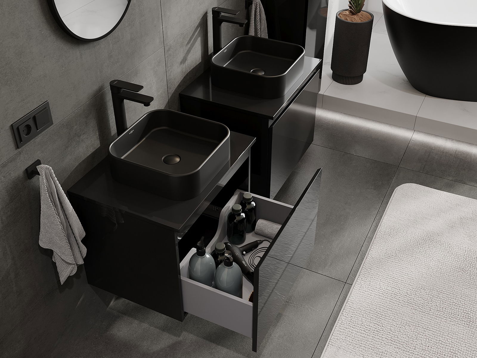 Τα αρθρωτά έπιπλα μπάνιου μας μπορούν να συνδυαστούν μεταξύ τους σε διάφορες χρωματικές διαμορφώσεις, επιτρέποντας πλήρη εξατομίκευση. Μπορείτε να επιλέξετε τόσο την εμφάνιση όσο και τις λειτουργίες των επιμέρους στοιχείων, ώστε να προσαρμόσετε τα έπιπλα στις δικές σας στιλιστικές και λειτουργικές προτιμήσεις.