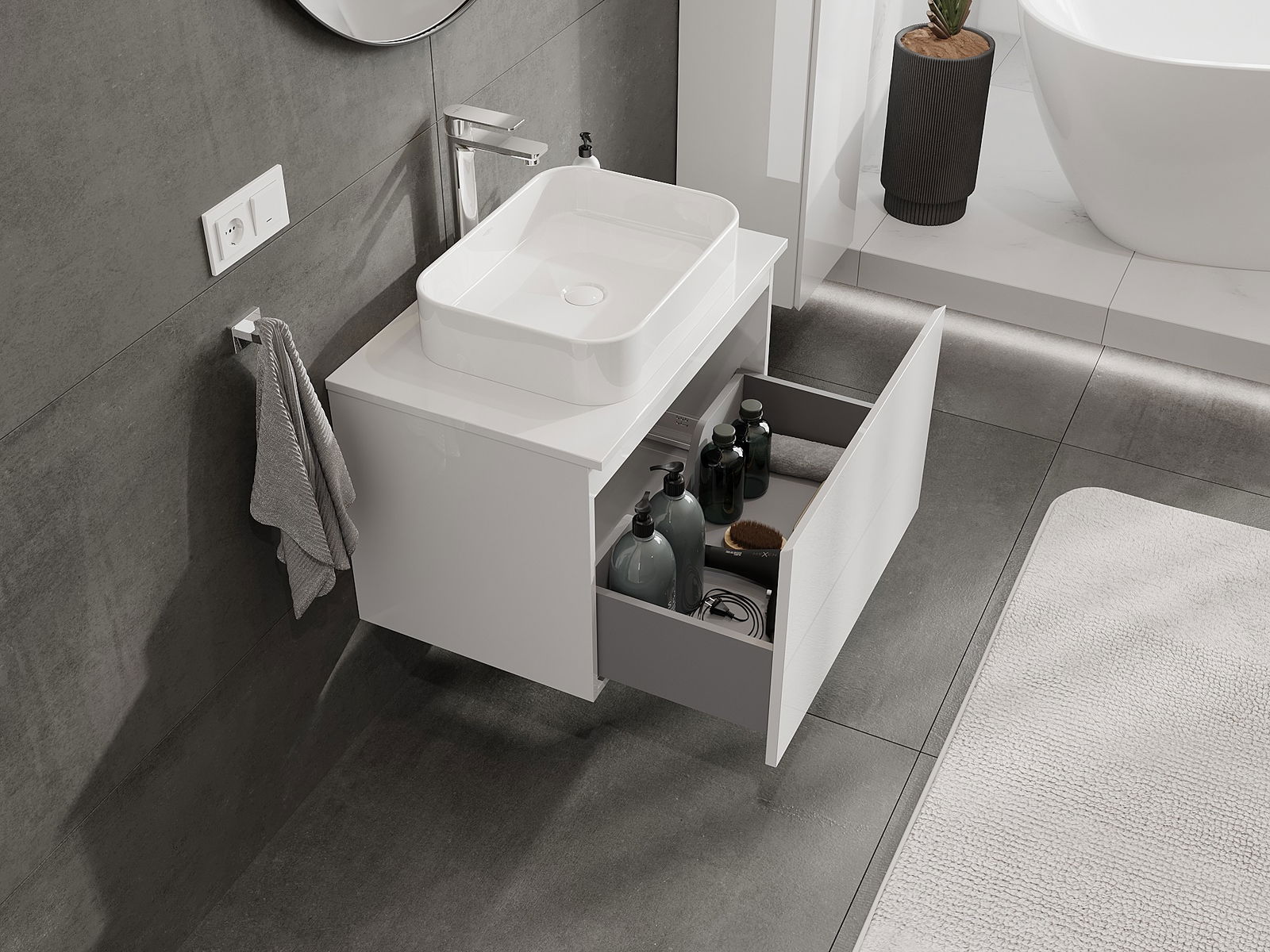 Τα αρθρωτά έπιπλα μπάνιου μας μπορούν να συνδυαστούν μεταξύ τους σε διάφορες χρωματικές διαμορφώσεις, επιτρέποντας πλήρη εξατομίκευση. Μπορείτε να επιλέξετε τόσο την εμφάνιση όσο και τις λειτουργίες των επιμέρους στοιχείων, ώστε να προσαρμόσετε τα έπιπλα στις δικές σας στιλιστικές και λειτουργικές προτιμήσεις.